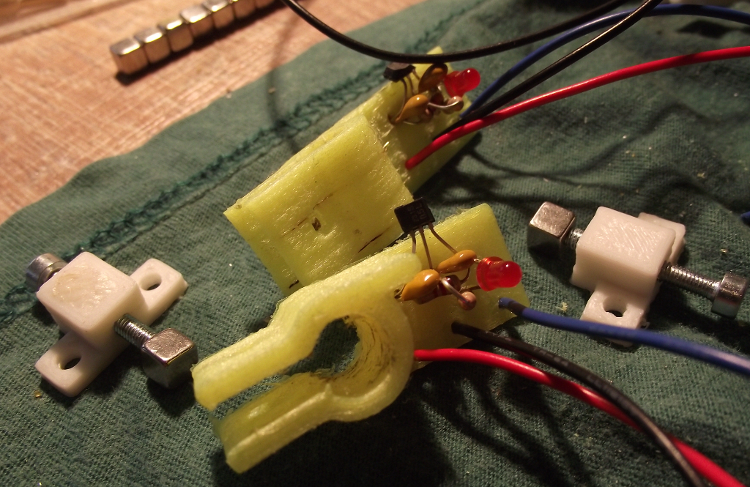 Так что вопрос к знатокам - к каким еще популярным типам принтеров могут подходить такие стопэнды? И как думаете, есть шансы - ну для начала , потихоньку, двигаться в этом направлении. Материал самого стопэнда - капрон, прочный и гибкий. фиксация получается надежная, не хрустит не ломается. Держатель магнитика, на винтике - из АБС пластика - его можно легко приклеить ацетоном, к деталям принтера. Или прикрутить шурупчиками. Срабатывает четко, отпускает, правда не сразу - петля гистерезиса. В отличие от оптических схем - очень четко - момент погасания/зажигания светодиода виден, что приятно при настройке.Платку-макетку - не нужно прикручивать, она уже с дырочками сразу и печатается. Только скрутить ножки деталей и припаять провода.Спасибо.