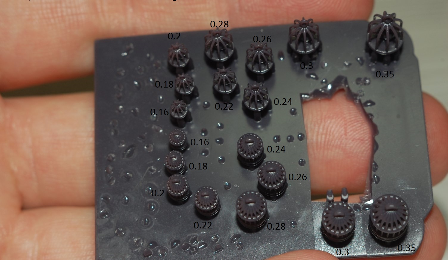 5) Цена - за счет себестоимости расходников, практически все равно что печатать маленькую заклепку, что полный рабочий стол колец, домиков и прочее. Посему и ценовая политика такова: один минимальный заказ (что включает любое количество моделей, которые влазят в рабочий объем и 30 мл. материала, высоту до 100 мм, расстановку опор, постобработку модели (кроме снятия с опор) - цена 500 грн. Для новых клиентов два первых заказа с 50% скидкой чтоб проверить качество и все такое. То есть 250 грн. Еще раз повторюсь - количество моделей любое, лишь бы они скопом влезли в рабочий объем. Само собой что между ними должно быть небольшое расстояние. Ну скажем 1-2 мм будет достаточно. Некоторые клиенты их даже блинчиками один над другим пакуют, да, если в пределах разумного то и так можно.