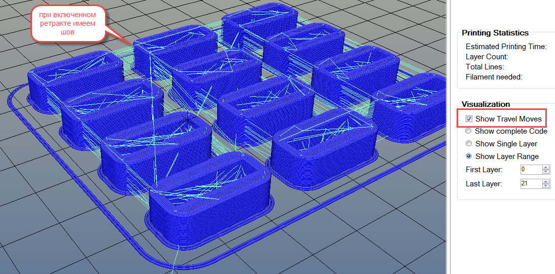 Проблема шва оказалась в в том, что я на самом деле не выключил ретракт как планировал. Понял это как только включил "show travel moves" в Repeiter.