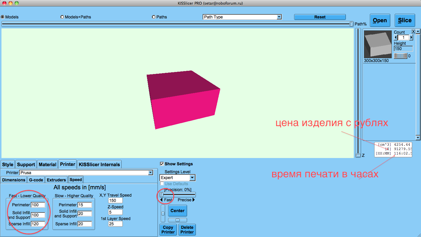 setar писал(а):Диаметра применяют два : 3мм и 1.75мм первый более распространен, в том числе есть российские производители, второй позволяет быстрее печатать, но покупать придется только "там". Пластик стоит порядка 1000р/кг если везти нормальный вес (~10кг), Российский дешевле.
