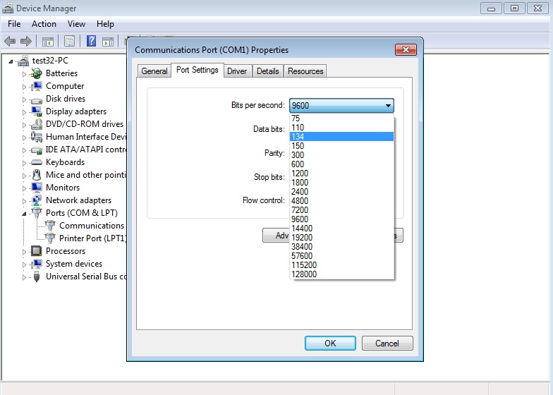 Для виртуальных портов(а у вас такой) рабочие скорости могут быть и выше: 256000, 512000