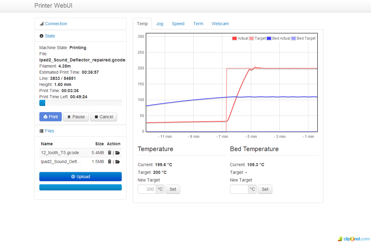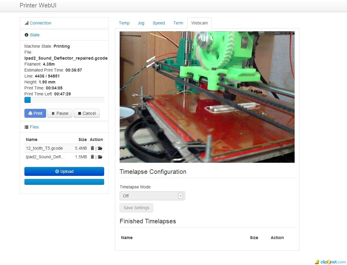 А так, к принтеру сейчас привязано решение стоимостью примерно 100 долларов (меньше в общем-то), и проверить статус печати я могу хоть с основного пк, хоть с планшета или телефона, причем увижу как визуально (например что модель не деламинировалась), так и программно (температура, какая строка файла печатается, etc.).