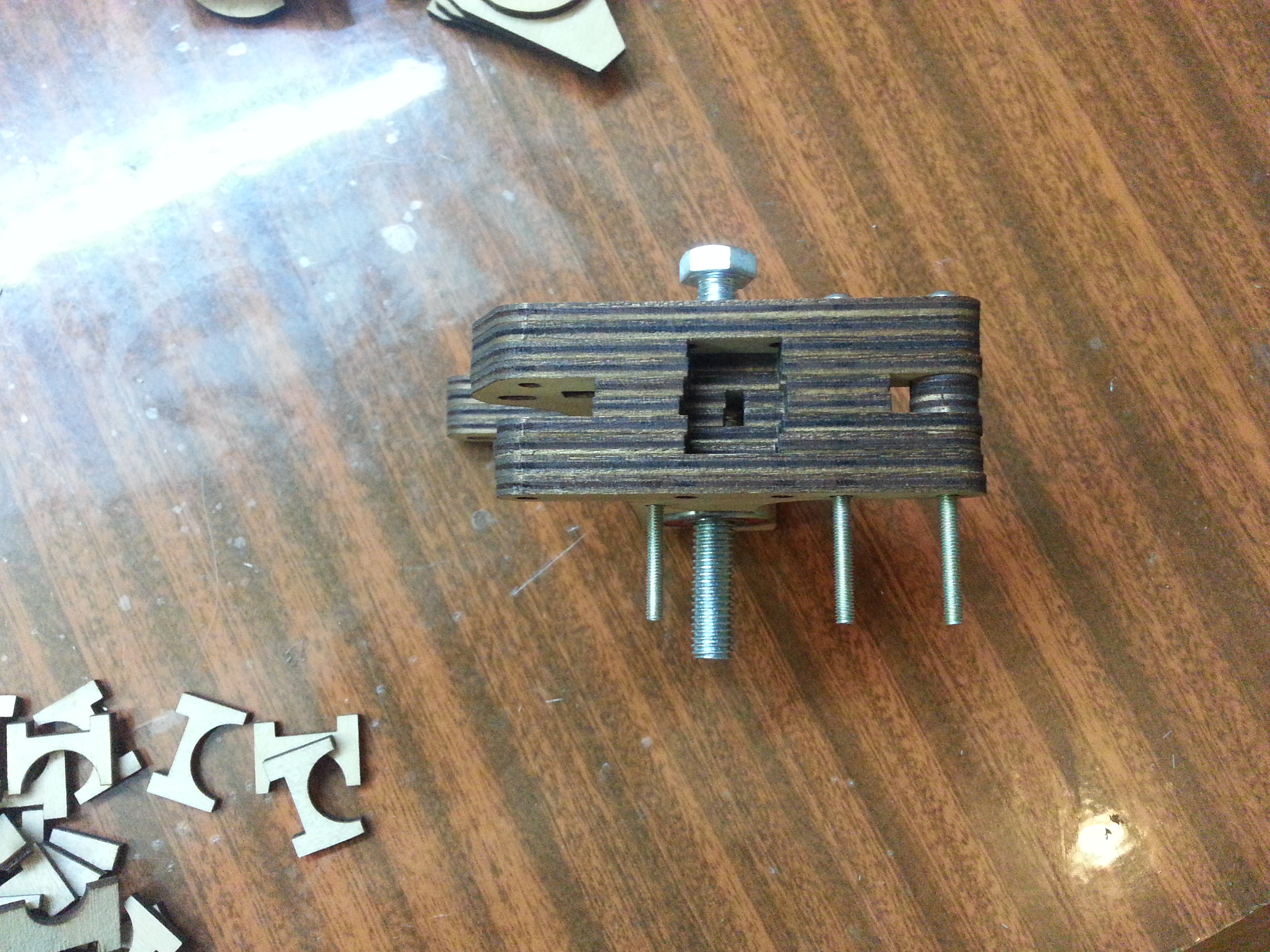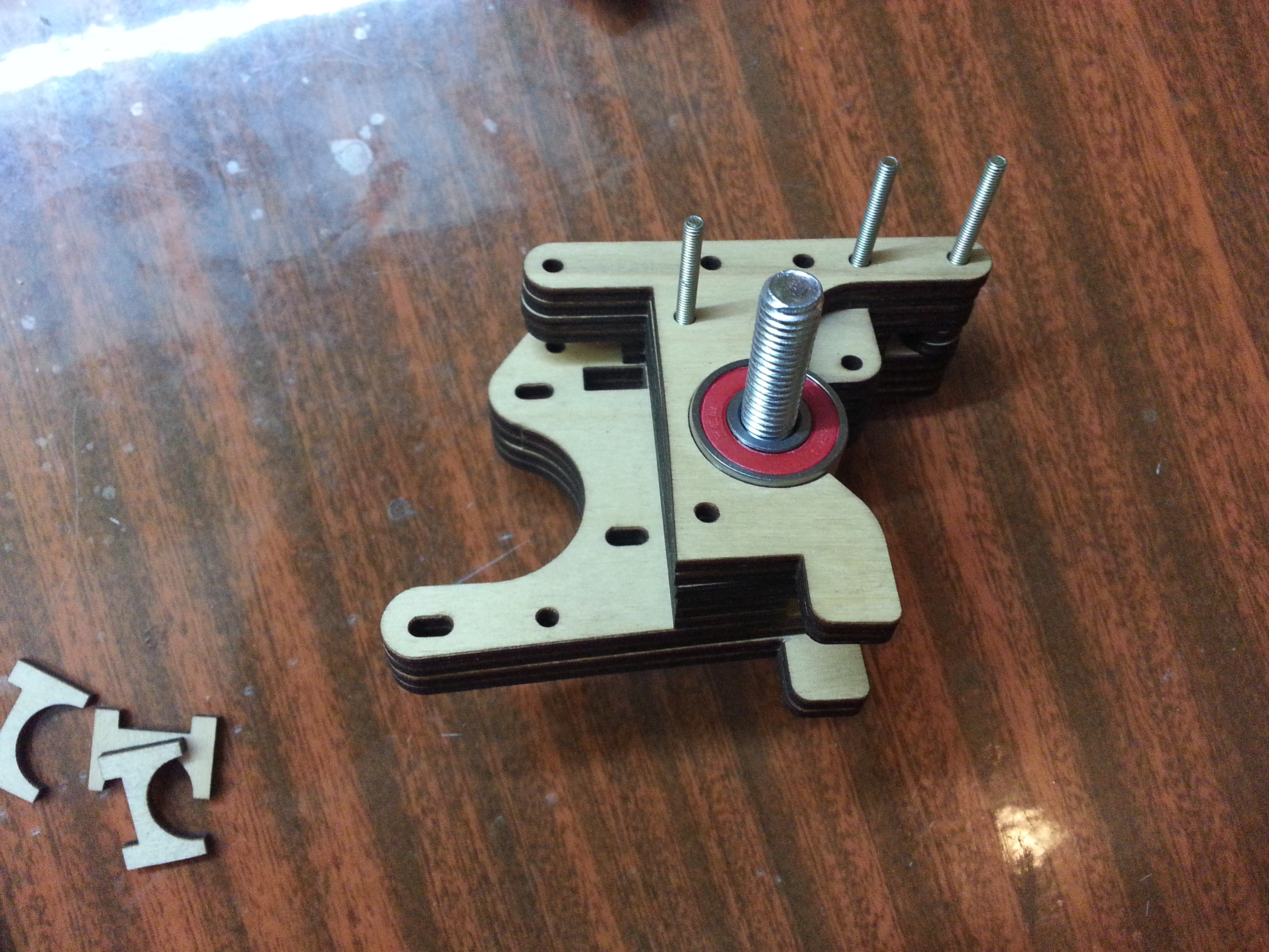 Слои склеивал пва. Перемычки высверлены после склейки. На каретках Z они выламываются после склейки.