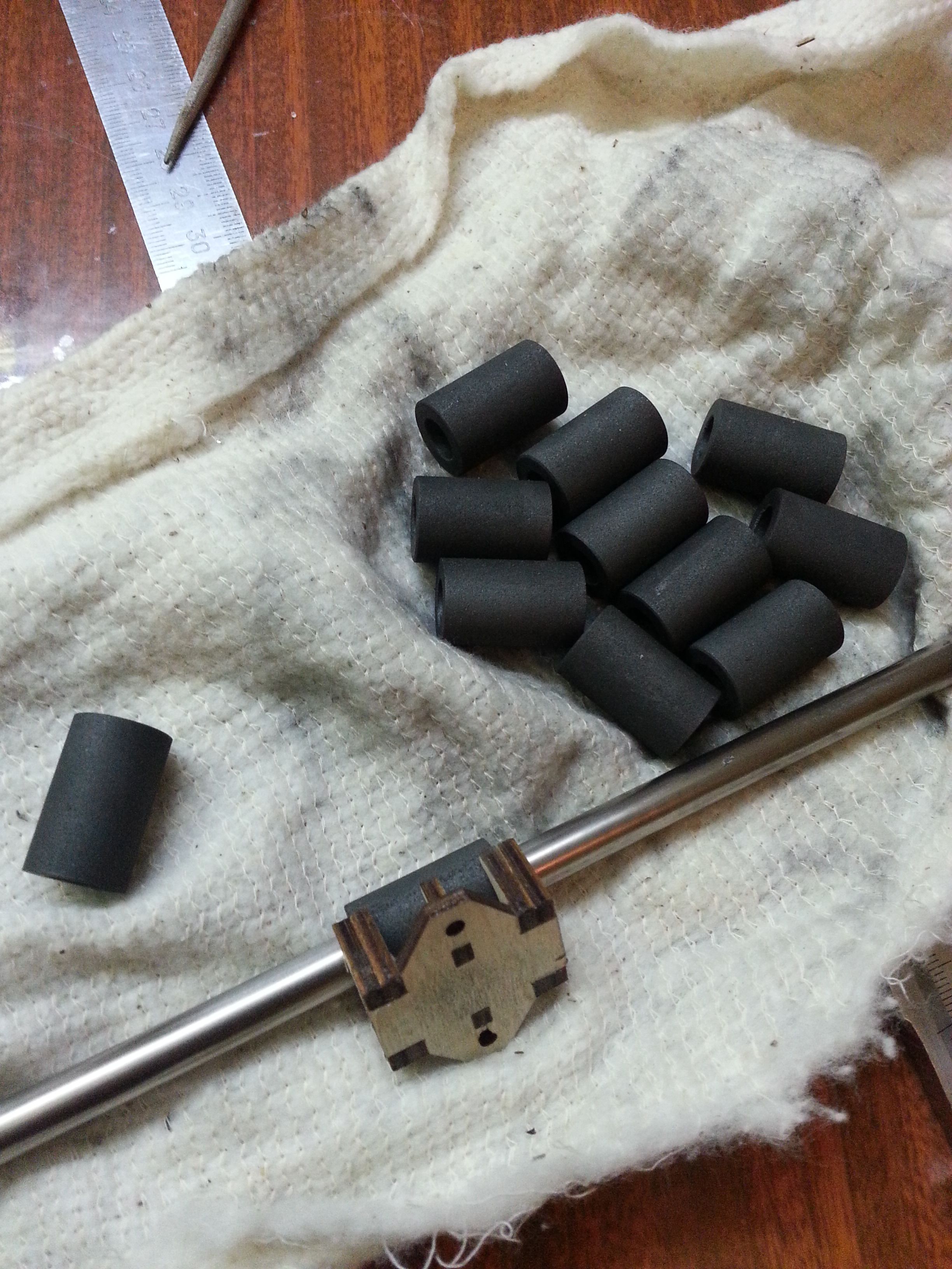 Втулки из графита. Их размеры как у lm8u подшипников - Ф8*Ф15*24мм. Вклеивал циакрином.