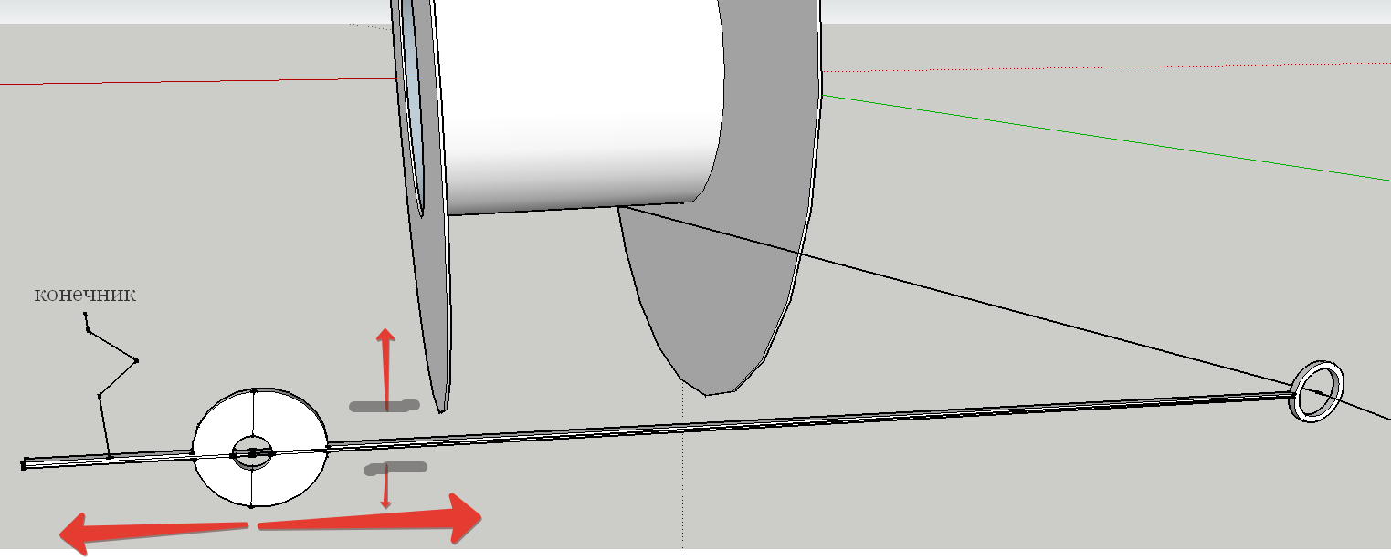 Вот, смысл этой конструкции в том, что можно водить кольцо вместе с рычагом вдоль намотки нити и одновременно равномерно распределять намотку, а с другой стороны, если натяжение падает ниже уровня можно увеличить скорость.