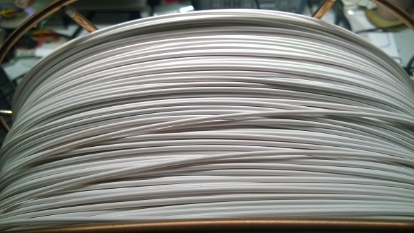 Этот АБС оказался намного текучей чем NoName :) и за счет этого получилось увеличить скорость изготовления нити. Хотя это не предел, можно и быстрее .. только придется отодвинуть протяжку подальше от сопла чтобы нить успевала остывать. И как-то стабилизировать ее позицию в воздухе.. типа сделать воздушный шлюз для нити чтобы выходящая из сопла нить не вытягивалась под весом остывающей которая еще не дошла до протяжки.