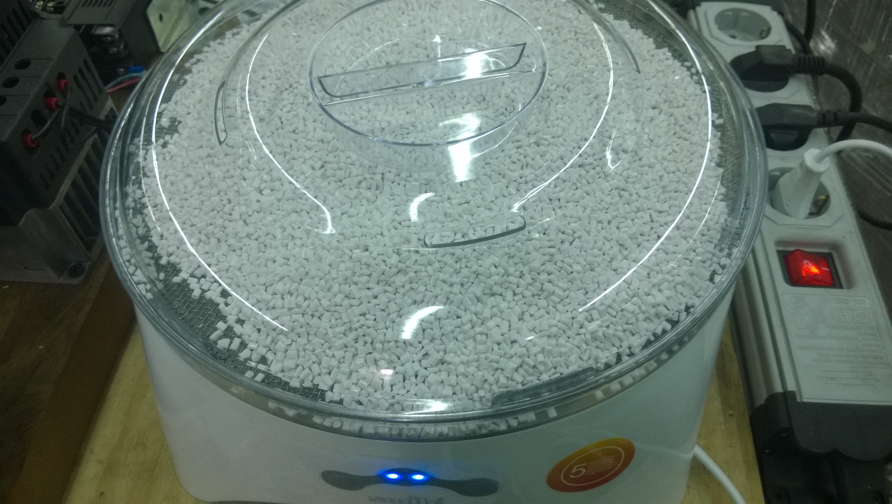 Еще огромное спасибо om2804 за совет по сушке материала. По началу делал не суша материал, качество было хорошее но очень часто встречались небольшие бугорки на поверхности нити, как будто недоплавливаются гранулы, но все оказалось как раз в не просушенном материале. Я заранее для сушки прикупил самую дешевую электро сушку для овощей и грибов, у нее температура сушки ~70 град. ...