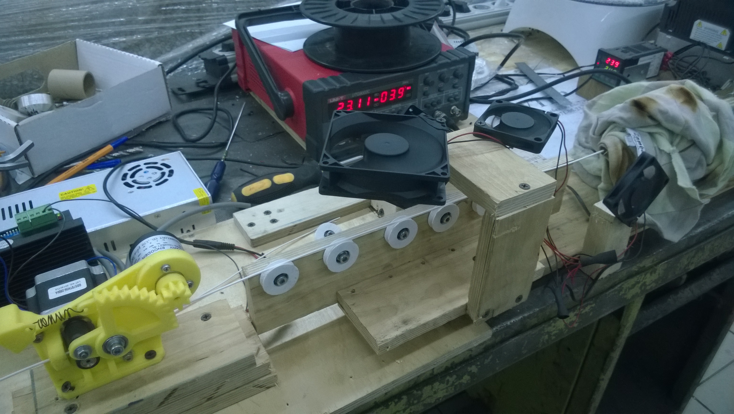 Протяжка не дергает нить :) Это вентиляторы воздухом ее дергают, завтра чего нибудь придумаю чтобы нить не колебалась, тогда думаю и проблема с небольшими изменениями диаметра уйдет.