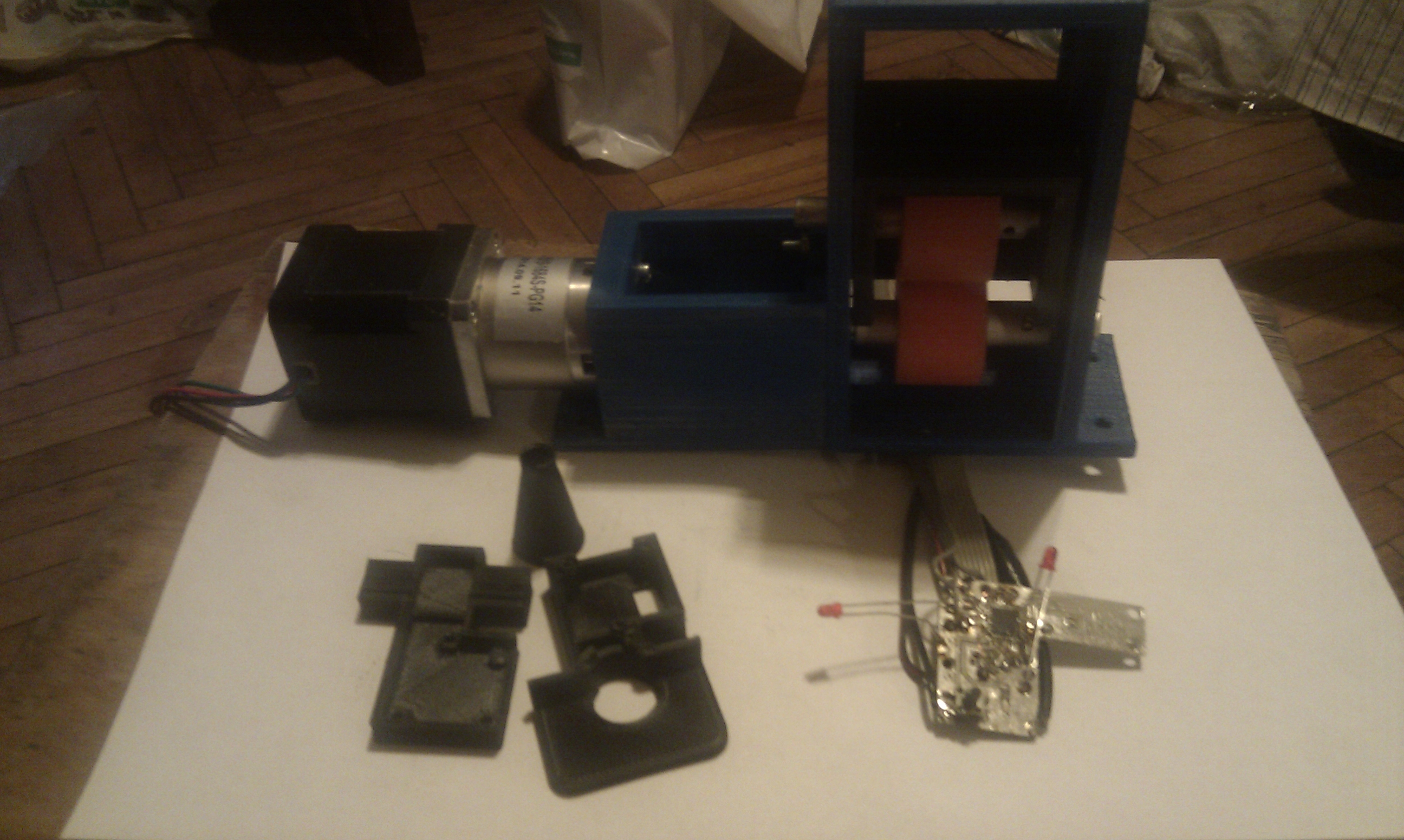Да я уже давно сварганил протяжку из валов механизма подачи бумаги от принтера. Уже начал делать контактный измеритель диаметра на датчике Холла, но ставить его придется далеко от экструдера, чтобы он мерил совсем холодную нить и не деформировал ее. Боюсь не поспеет он с регулировкой, да и точность... а оптический - самое то! А на меге, совсем народный вариант! Так что с нетерпением жду! :good: