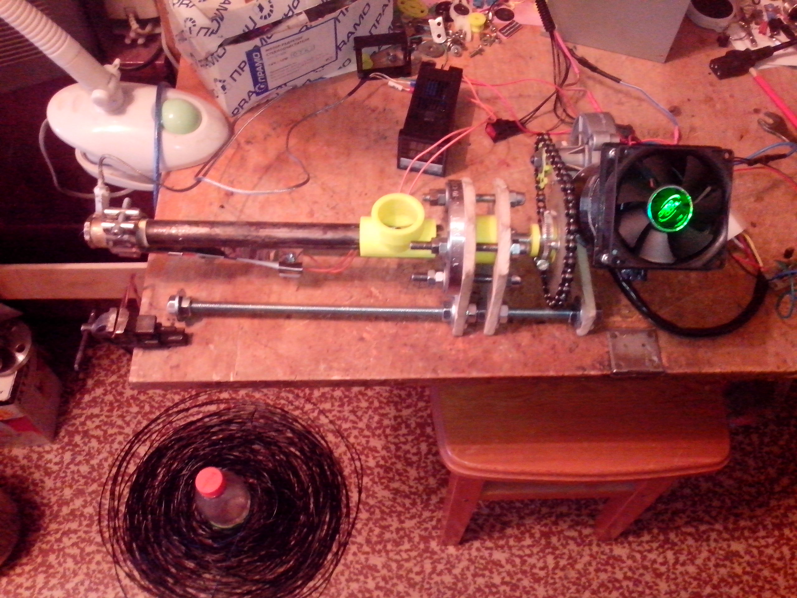 om2804 писал,что не зависит от оборотов шнека или я так его понял.Зависит от частоты вращения, точно.Посему должен быть стабилизатор частоты вращения,и двигатель обязательно (желательно) помощьней,об этом тоже писали здесь.У меня 10Вт,греется,сделал охлаждение,вырубает по току.Сегодня сниму термореле двигателя посмотрим что будет.А так мотает 3/4 катушки и срабатывает термореле, соответственно пока стоит, диаметр уходит.А так Д 1.72-1.78,в слайсере оставил 1.75.Печатает.Может не для эстетов, но мне подходит.Просто ставилась задача построить данную штуку без вложения средств,из подручных материалов найденных в гараже,на работе и т.д.,без токарных и иных работ,используя только 3d принтер ножовку и надфиль.Отпечатал две по 3/4 катушки-полёт нормальный
