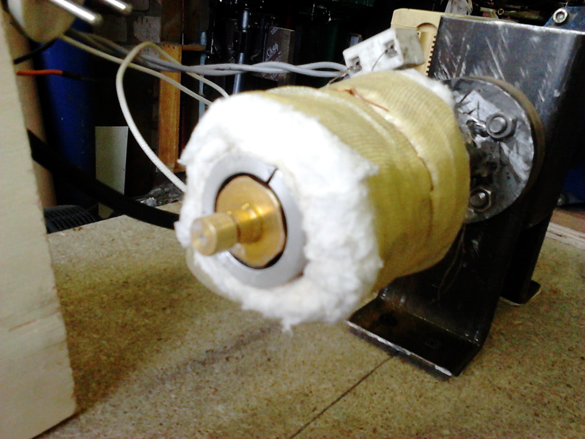 Ставил тоже диод 5-10ампер 500-1000в, что найдете. В гараже валялся 5а 500в, его и поставил, а там смотрите на мощность вашего нагревателя- делите ее на 220 и получите значение тока. Мощность диода лучше с запасом, не так сильно греется. Нагреватель делал самодельный, так как китаец умер при включении. Брал спираль 600 ватт и мотал через слюдяную изоленту, на алюминиевую болванку. Получилось два слоя. Сверху покрыл каким-то материалом, хз как называется, на вид вата только не горит, используется в сталелитейном производстве для теплоизоляции. При первом включении много дыма потом ничего. Мотал одновременно с леской для разделения витков. Спираль перед намоткой несколько минут прогрел для образования оксидной не проводящей пленки. Леску диаметром 0,3-0,35 после намотки слоя удалил. То что получилось на фото после первого включения разорил-не хватает мощности двигателя экструдера( не делайте так-потеря времени и нервов), заменил на связку мотор редуктор+двигатель 0,37квт + частотник 400ватт, как следствие стабильность оборотов и диаметра. Сейчас переделываю протяжку и жду нужный пластик. Интересно посмотреть как происходит запуск установки у собравших ее, включение-выход нити-заправка в протяжку-заправка в намотчик-разгон-синхронизация, а так же нюансы настройки. Может кто поделится информацией, выложит видео?