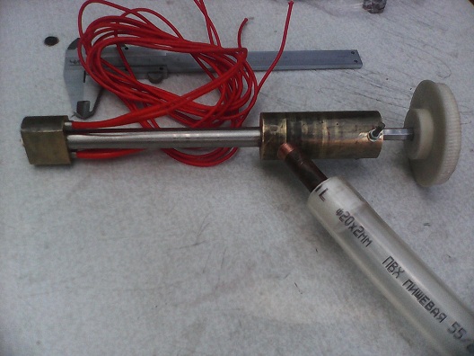 Принцип работы засыпаем, прогоняем пока не полезет пластик. При выдавливании на выходе стоит датчик толщины, который на лету увеличивает или уменьшает скорость давления толкателем.Килограмм гранул насыпали и ждем, так же толкатель можно с отверстиями для выходя воздуха сделать, чтобы воздух выходил.