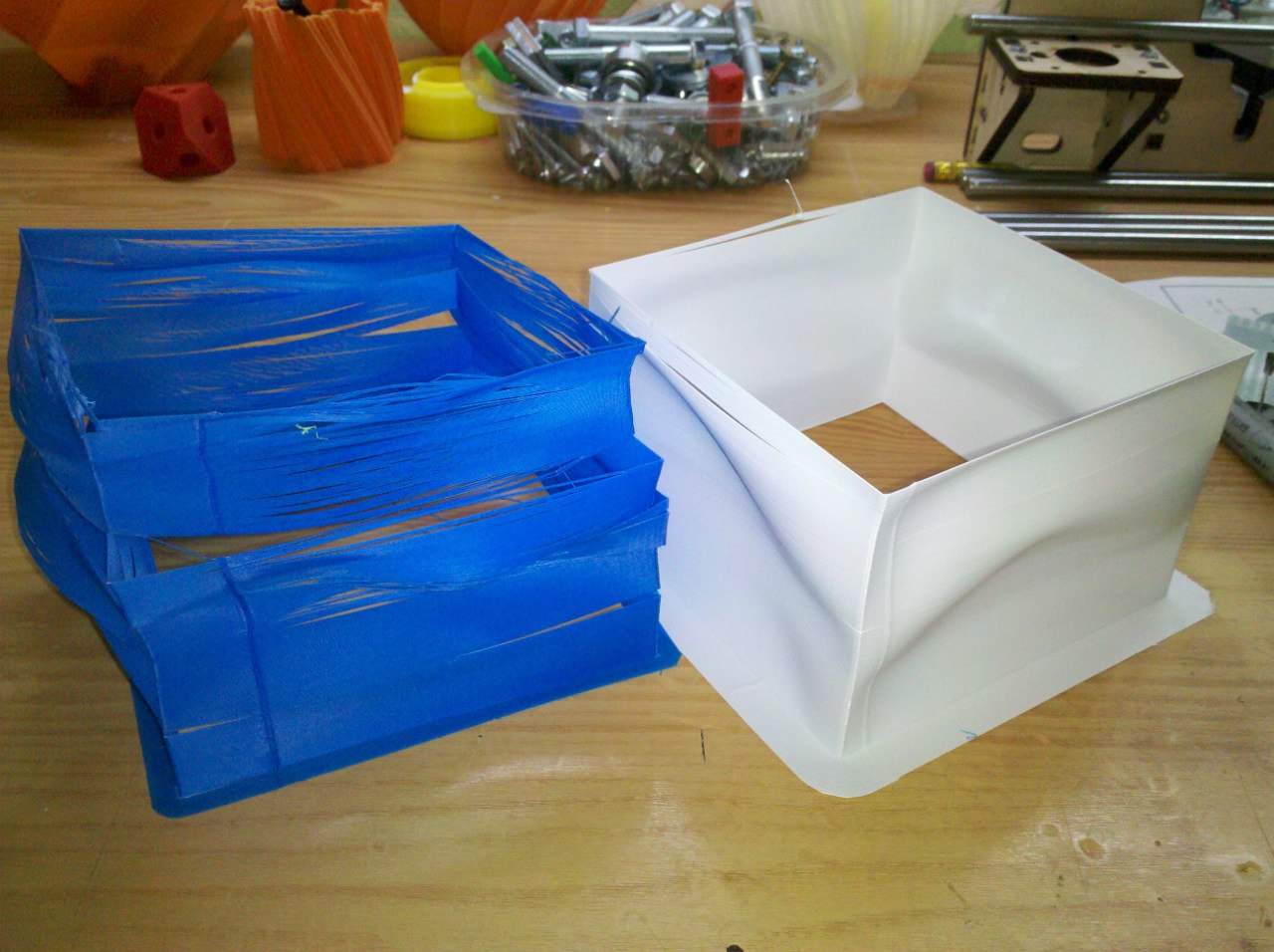Отчитываюсь, уважаемый om2804 прислал мне на тесты нить ABS собственного производства. До него использовал американский синий ABS. Диапазон рабочей температуры Американец 210-230, om2804 220-245, на крайних температурах пластик начинает пузырится щелкать и.т.д. Оба хорошо растворяются в ацетоне правда белый от om2804 становится прозрачным, что даже хорошо т.к делает клей универсальным для любых цветов. Видимо из за температурных свойств деломинация белого пластика намного меньше если на американце подогрев гонял на 80 гр, то на белом всего 60 гр, иногда американца приходилось клеять на ацетон и малярный скотч, с белым хватает клея карандаша на стекле в пару слоев. Мосты ! С белым нет проблем с мостами на фото практически все детали сделаны пустотелыми без поддержек, с синим не получалось. Американец пришел на катушке, om2804 связанный в бухтах, при распаковки бухты нить запутывается и перед работой приходится распутывать и перематывать заного, но это не минус это издержки думаю скоро поправятся.