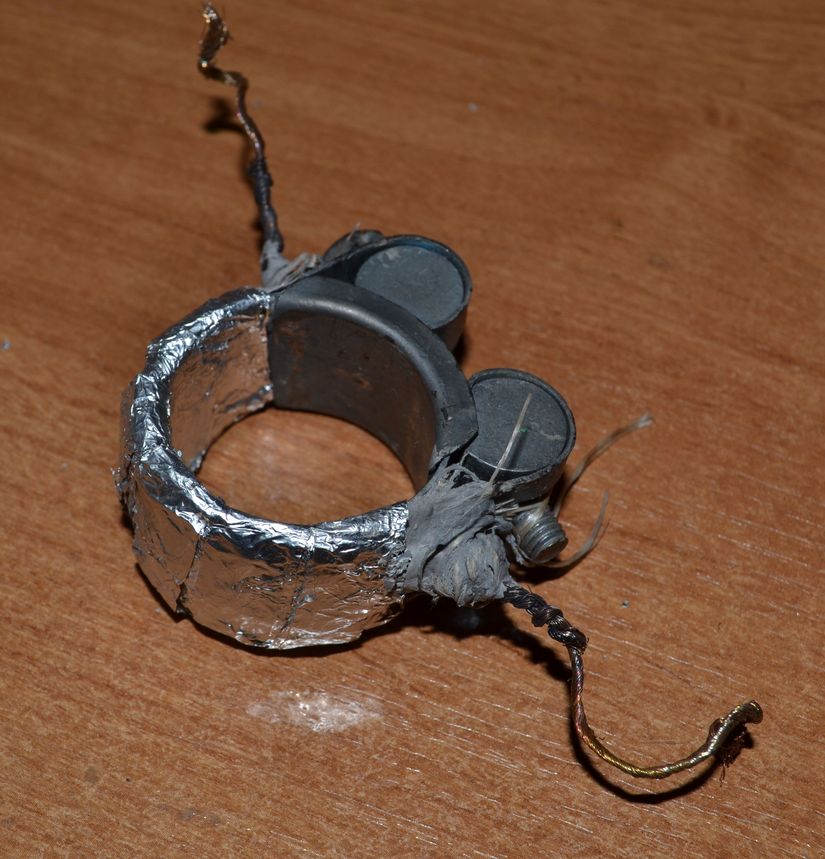Берём обычный хомут в строительном магазине, сверху обмазываем герметиком для глушителей(который 1100 градусов), потом змейкой укладываем нихром, заливаем сверху тем же герметиком в несколько слоёв, обматываем алюминиевой фольгой плотнгее, чтобы герметик не отошёл от хомута