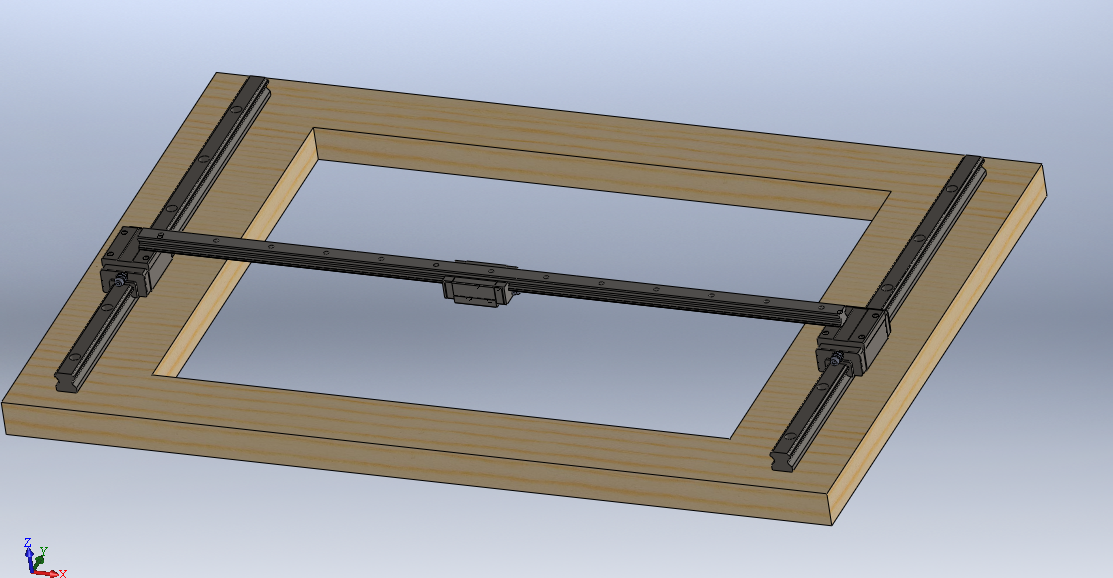 неподвижно на водило, шаговик таскает голову вдоль него, Z (1м)- в углах рамки ходовые винты