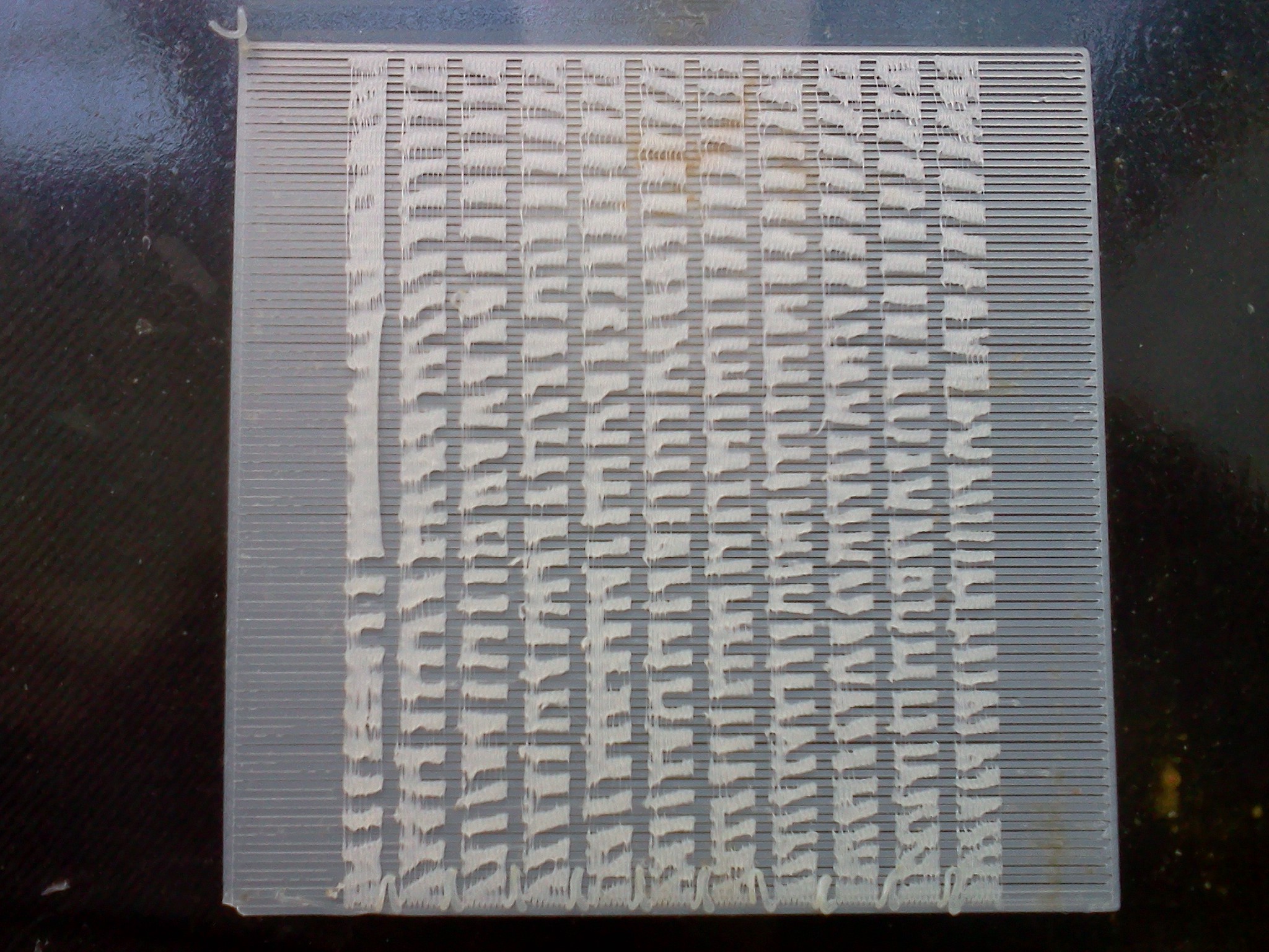 ну а по фотке вторая слева полоска напечатана более-менее (это тест чего ? смотри значения какие использовались в примечаниях блоков в g-code )