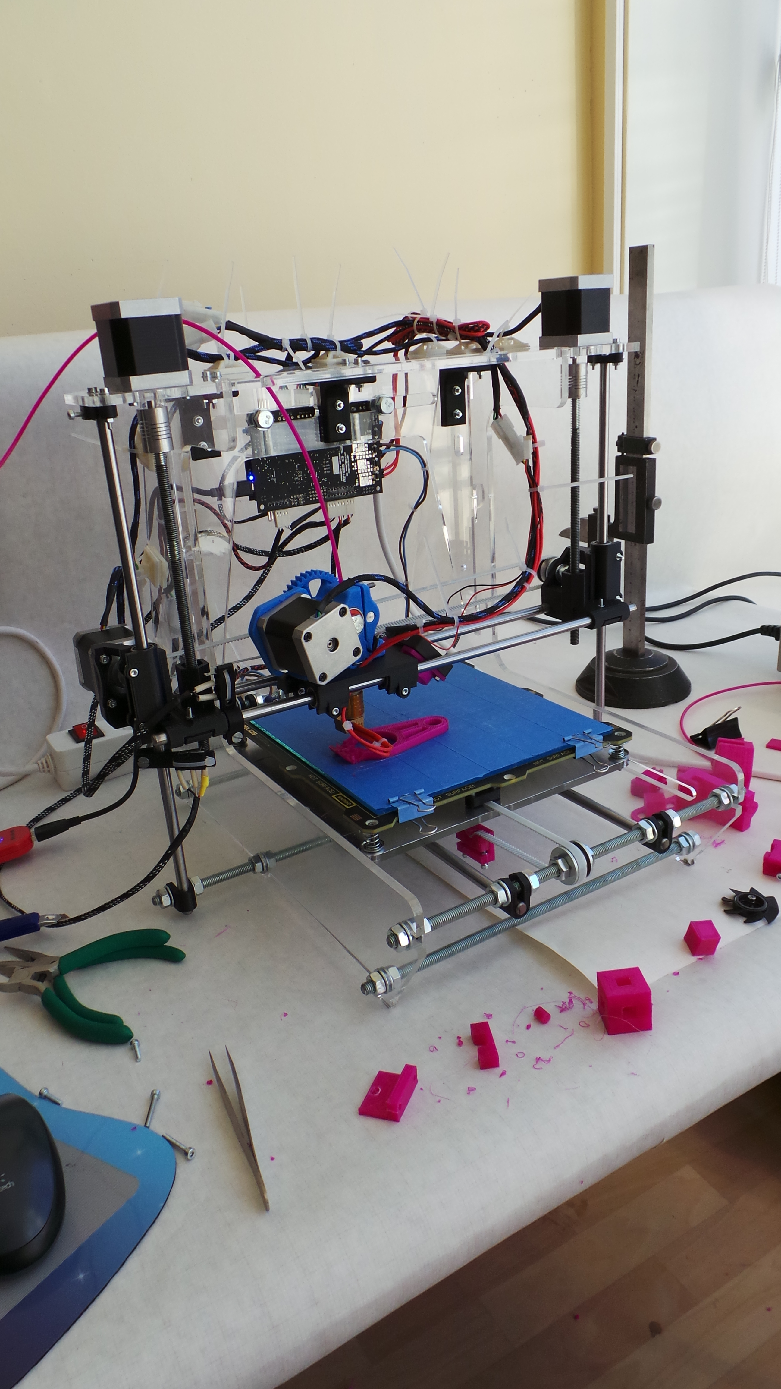 Корпус вырезан из 6 мм оргстекла по этим чертежам http://www.thingiverse.com/thing:14875