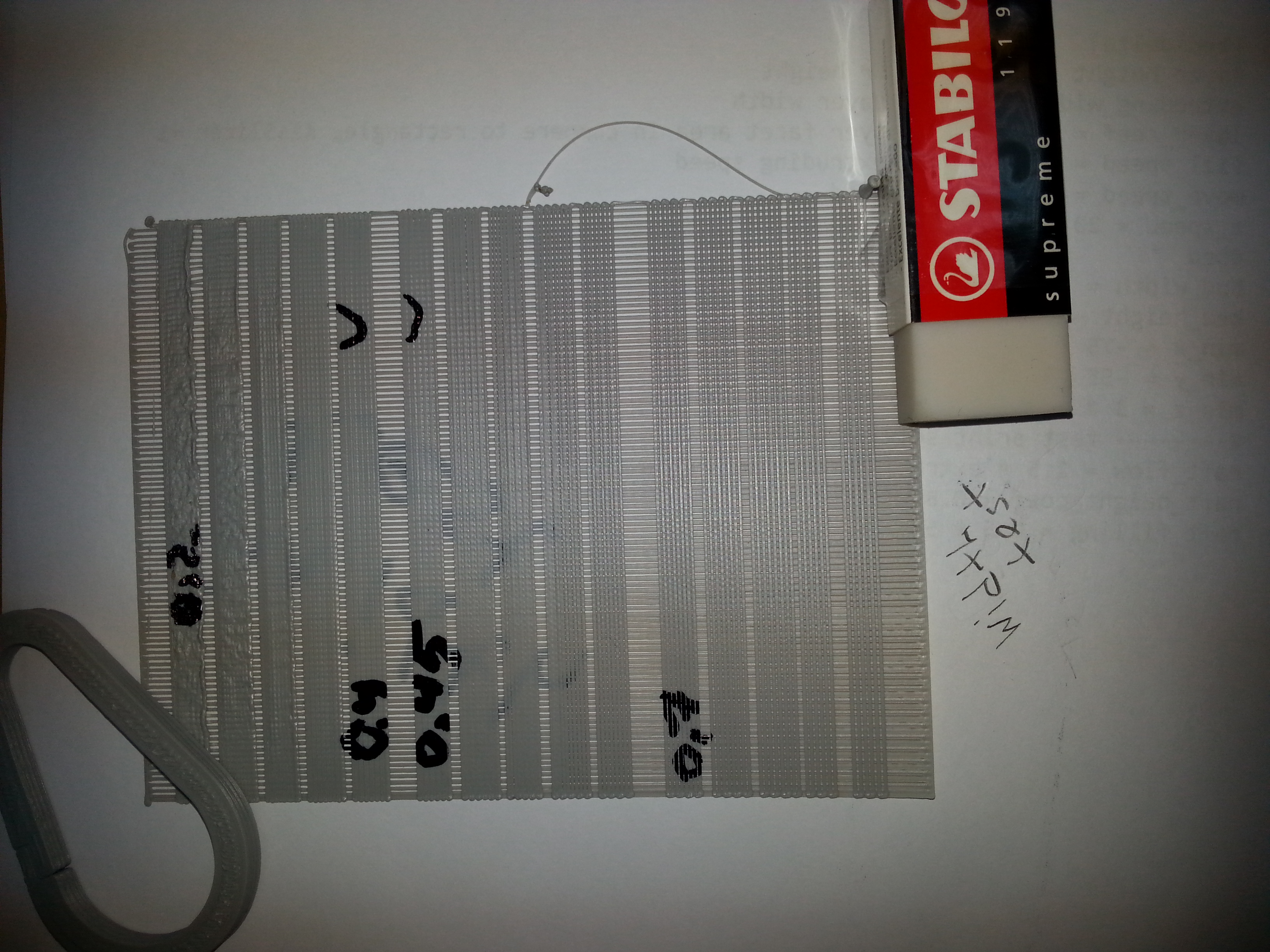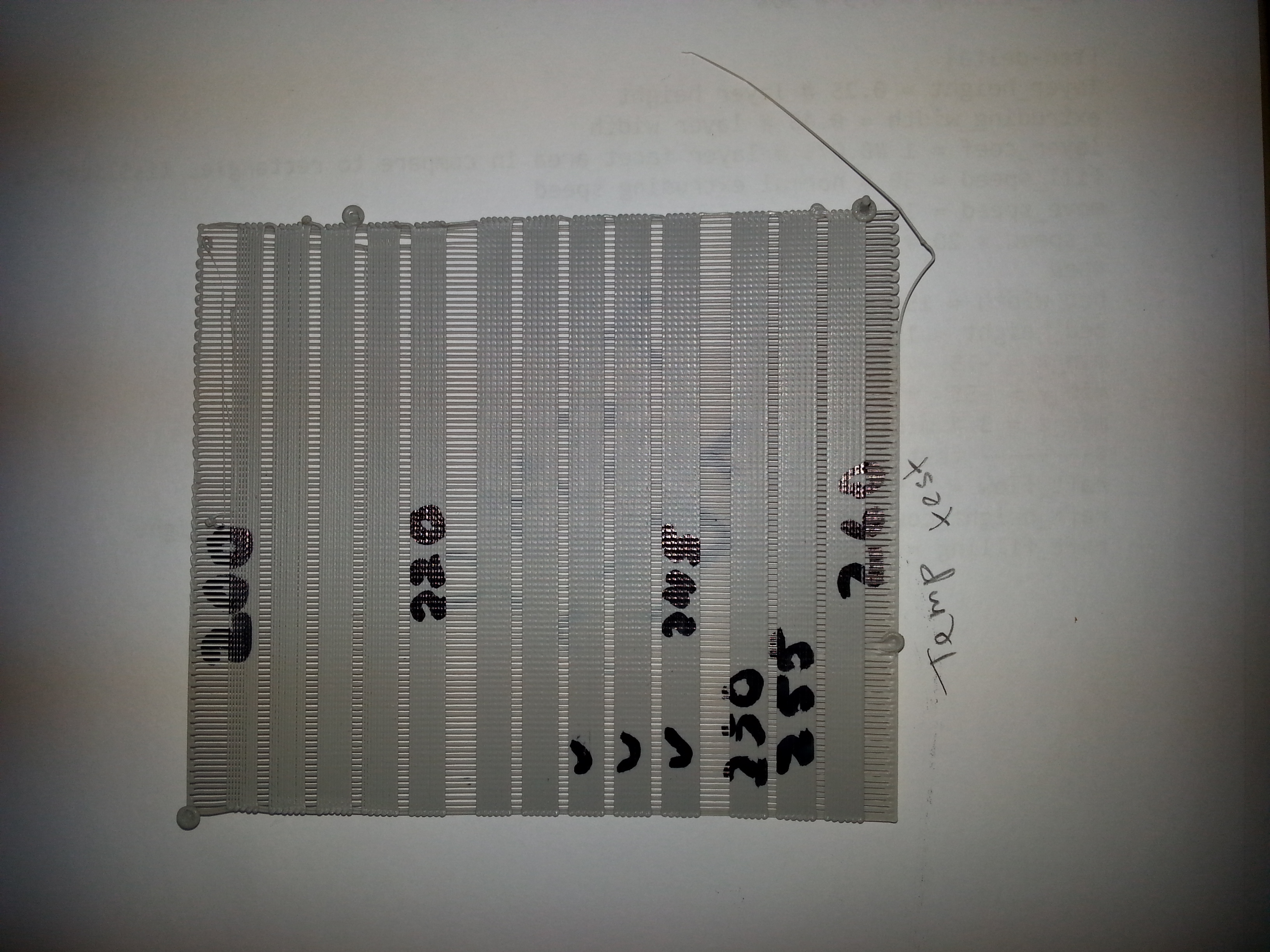 результатом теста является некоторый диапазон допустимых значений ширины одной линии экструзии