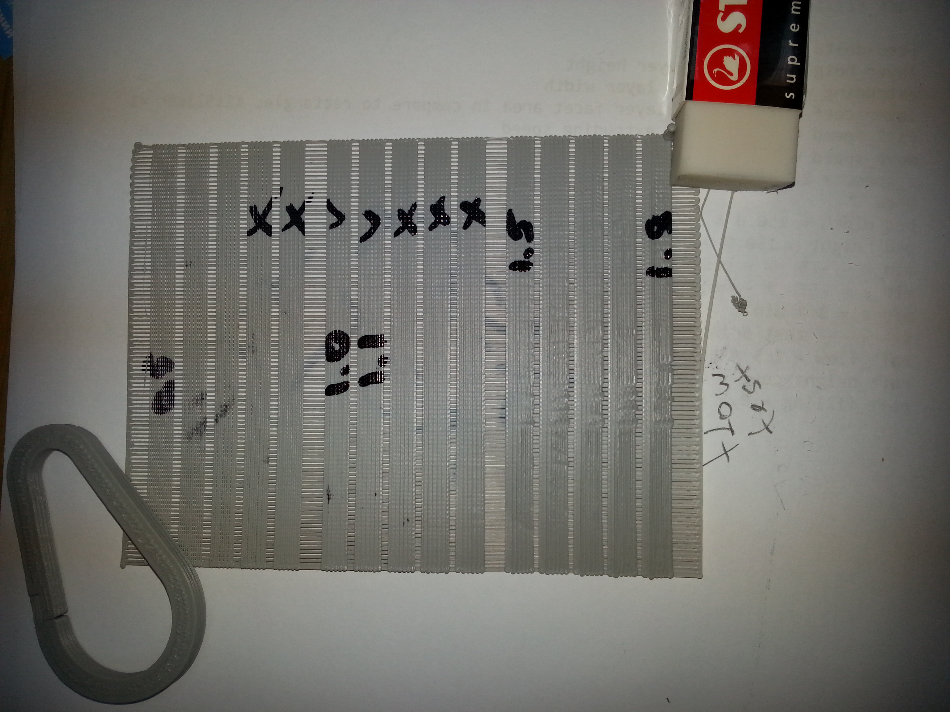 в этом тесте проверяется поток, он должен быть достаточен чтобы между линиями экструзии не образовывалось просветов (щелей), в то же время сильно завышенный поток будет давать выдавливание пластика за периметр модели.