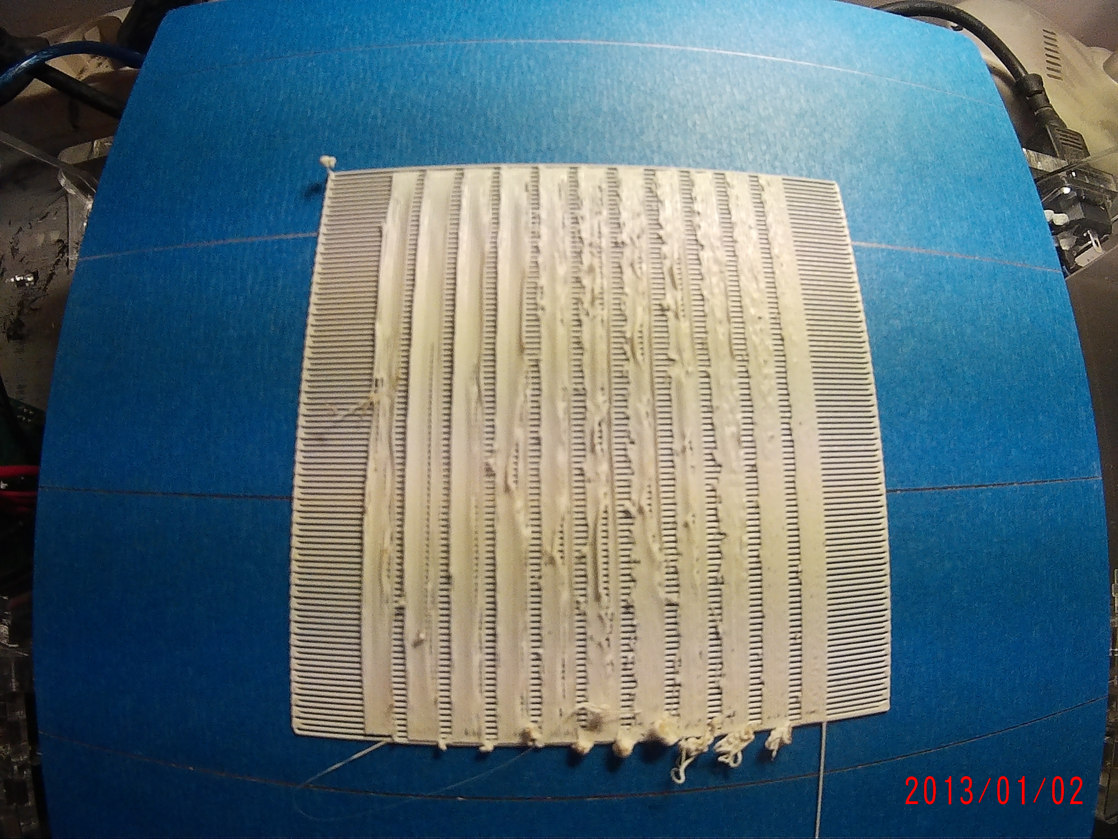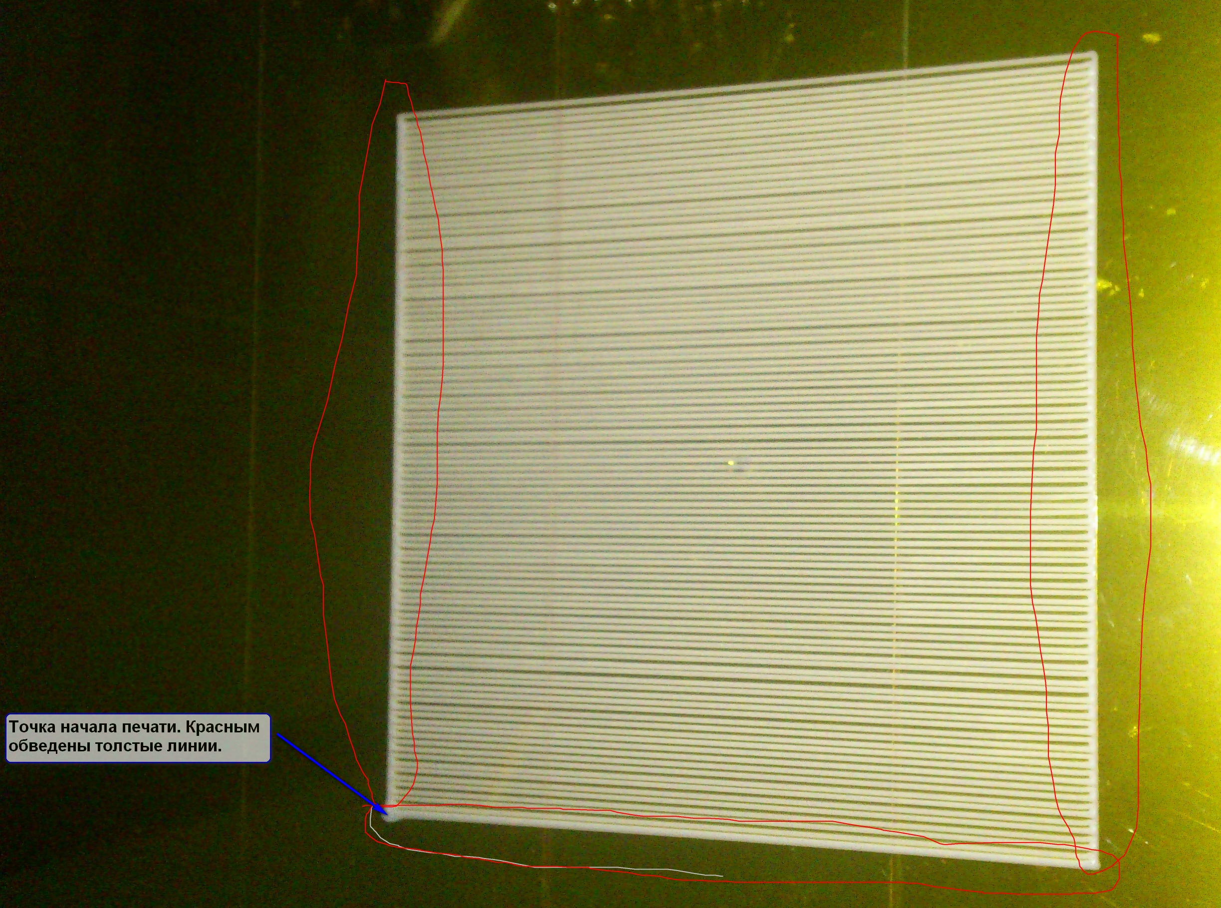 Приехал мой принтер RigidBot. В 3D печати я тока полный ноль (((. Печатать что-то осмысленное не решился, точнее решился но получилось полное Г. Решил пройтись по тестам, и сразу много вопросов возникло. Попробовал напечатать подложку (рафт). Получилось с 5-го раза, постоянно отрывался один и тот же угол и линии были неравномерные, то нормальные, то узкие - не хватало пластика или скорости экструзии. Хотя до этого распечатывал температурный тест и с подложкой все было нормально. Стол подкручивал несколько раз, но проблему не решило. Потом вспомнил, что температурный тест я проходил на скорости 30 мм/с, а рафтовый - 50 мм/с. Снизил скорость и все стало ОК. Я прикладываю фото рафтового конечного результата. Мне не нравятся расстояния между полосками, иногда они равномерны,а иногда больше чем надо. Еще по краям(наплывы) и самая первая линии более толще, чем внутри периметра. Подскажите,