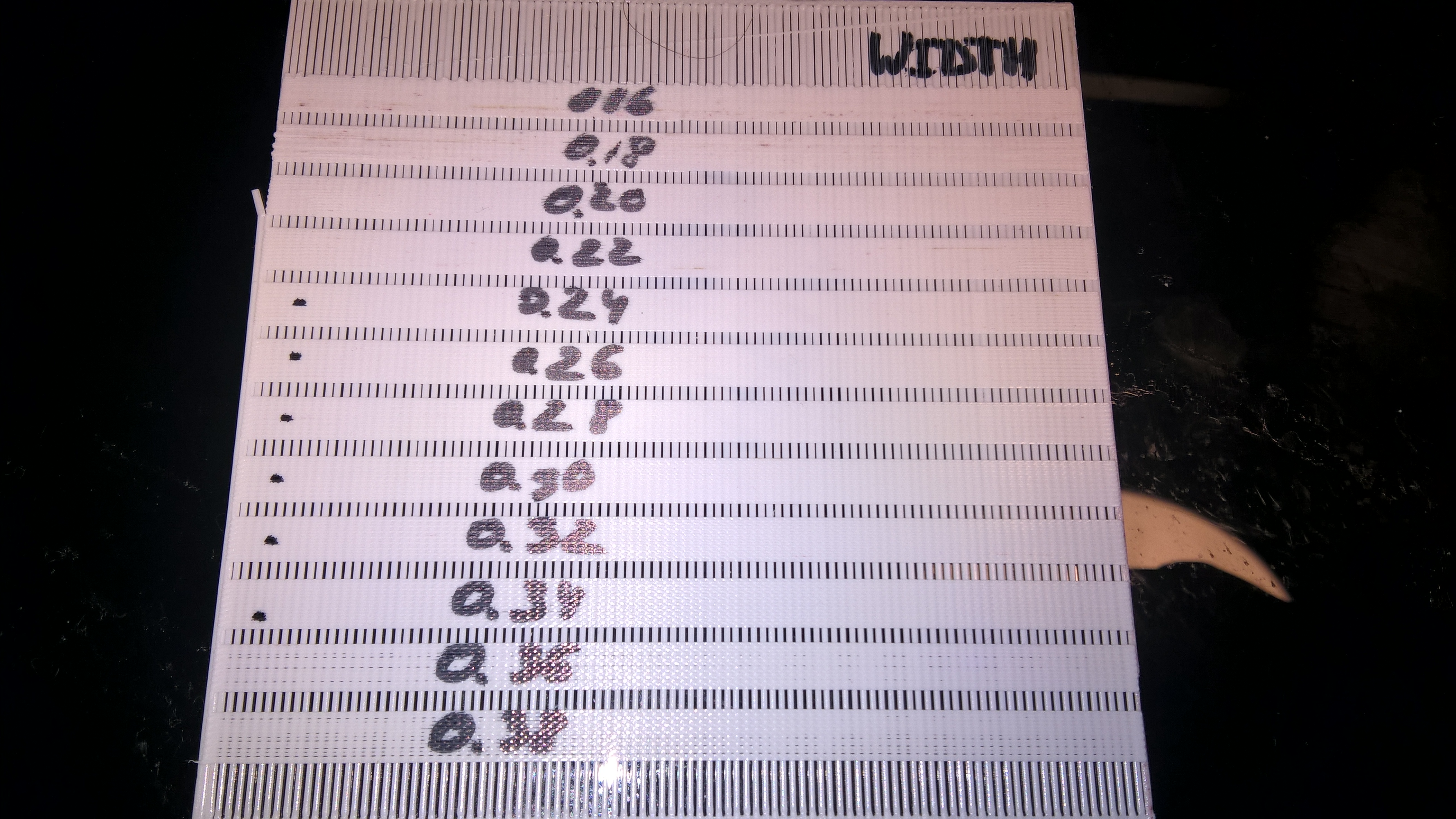 результатом теста является некоторый диапазон допустимых значений ширины одной линии экструзии
