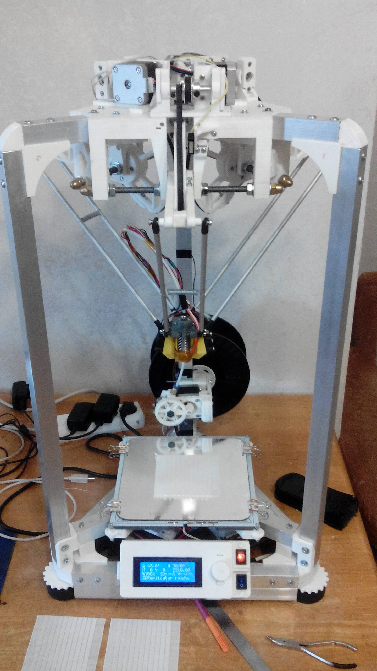 Собрал новый принтер, дельта робот(не путать с обычными дельтами!), и печатал опять тесты для настройки. В том числе temp. Так вот он дожидается установления температуры!