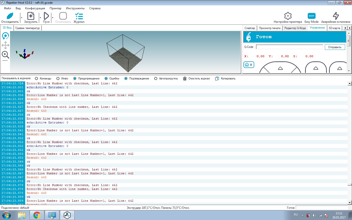 Здравствуйте. Решил откалибровать принтер с помощью калигатора. Раньше принтер печатал калибровочные тесты хорошо. Теперь репитор хост выдает ошибки. Старые тесты также не хочет печатать.