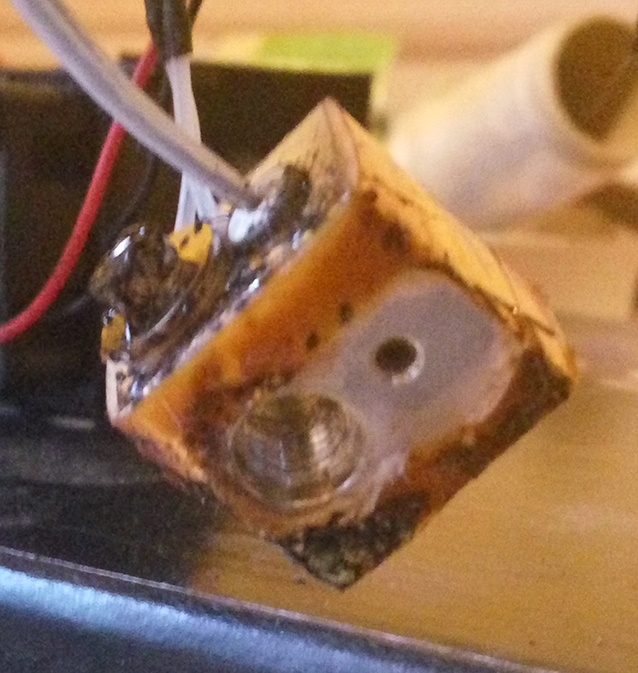 Трубка тефлоновая вполне себе еще послужит, разве что коротковата может стала? Сопло я замачиваю в ацетоне на пару часов. Потом ковыряю зубочисткой пока дырочка не появится на просвет. Потом прожигаю на газовой плите, держа плоскогубцами, пока из него ничего не будет вонять-дымить. После вычищаю сухие остатки и прочищаю дырочку спецсверлышком по диаметру сопла. Можно использовать и что-нибудь подручное, например, гитарную струну. Все, сопло готово к повторному употреблению ;) Обмотка на "кубике" преследует две цели: меньше потери тепла - стабильнее температура. А более важно, что меньше греется модель (особенно если мелкая) и термобарьер вверху. Хотя многие (и я в том числе) печатают без обмотки. Хотя в последний раз как перебирал хотэнд - обмотал кубик фум-лентой. Тоже неплохой эффект от нее.