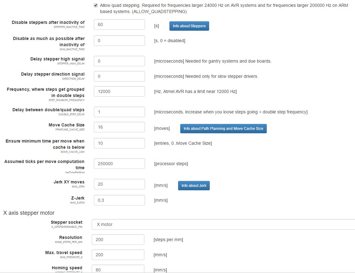 народ, пытаюсь разобраться в repieter прошивке, но печатает чего-то в два раза меньше даже если увеличиваю количество шагов до 400 на мм, дрова "фиолетовые", DRV8825, все три перемычки в рампсе, шаговики 1.8 градуса