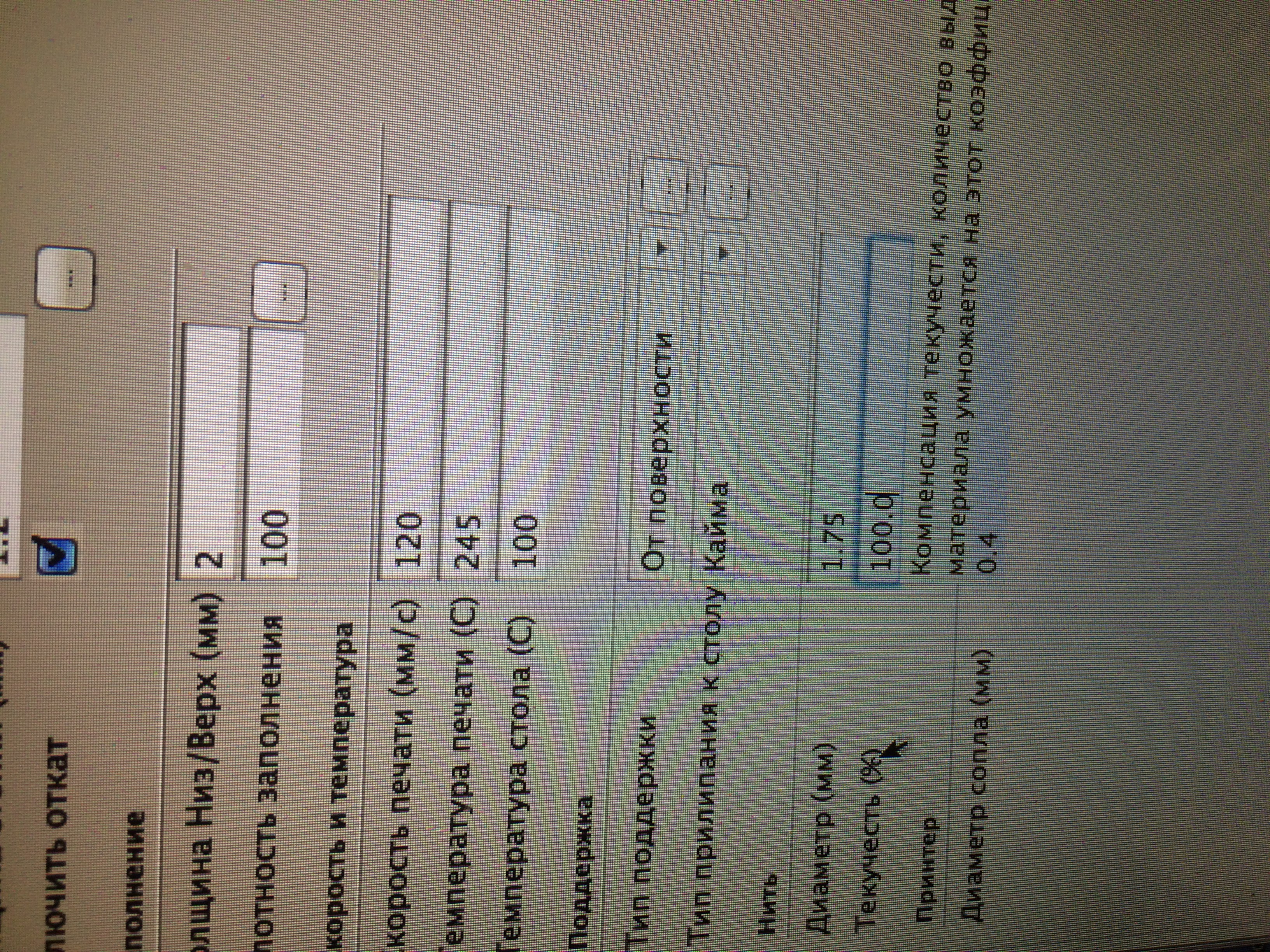 Flow, поток, можно менять в пределах нескольких процентов, но если требуется корректировка под 10% или выше, то надо калибровать экструдер.