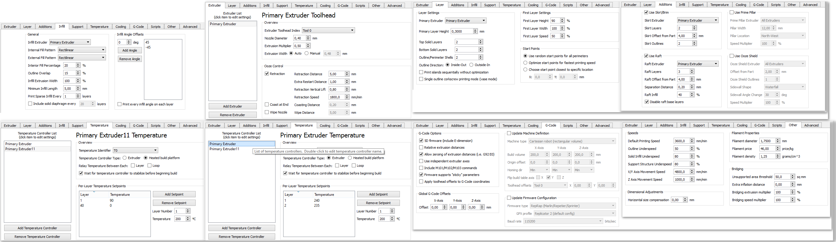2. Кто-нибудь может поделится проверенными настройками слайсера для этого принтера/экструдера/пластика?