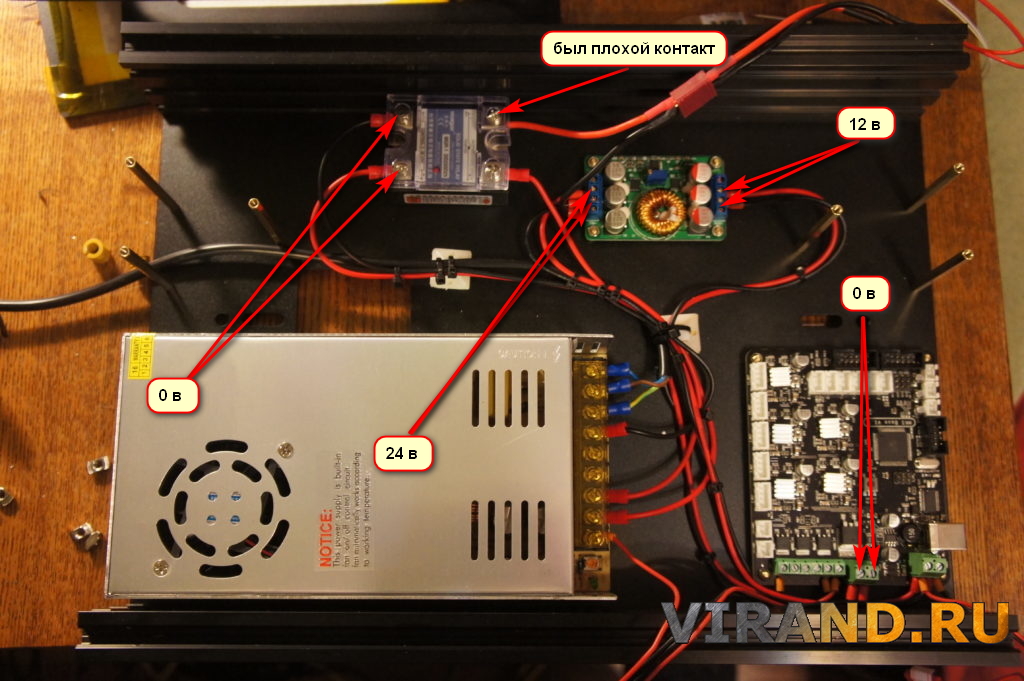 Johann_St писал(а):Посоветуйте, куда смотреть, что диагностировать, как я понимаю, отсутствует управляющий сигнал на реле, что смотреть на плате? В момент измерения напряжений, указанных на картинке, принтер вовсю грел стол.