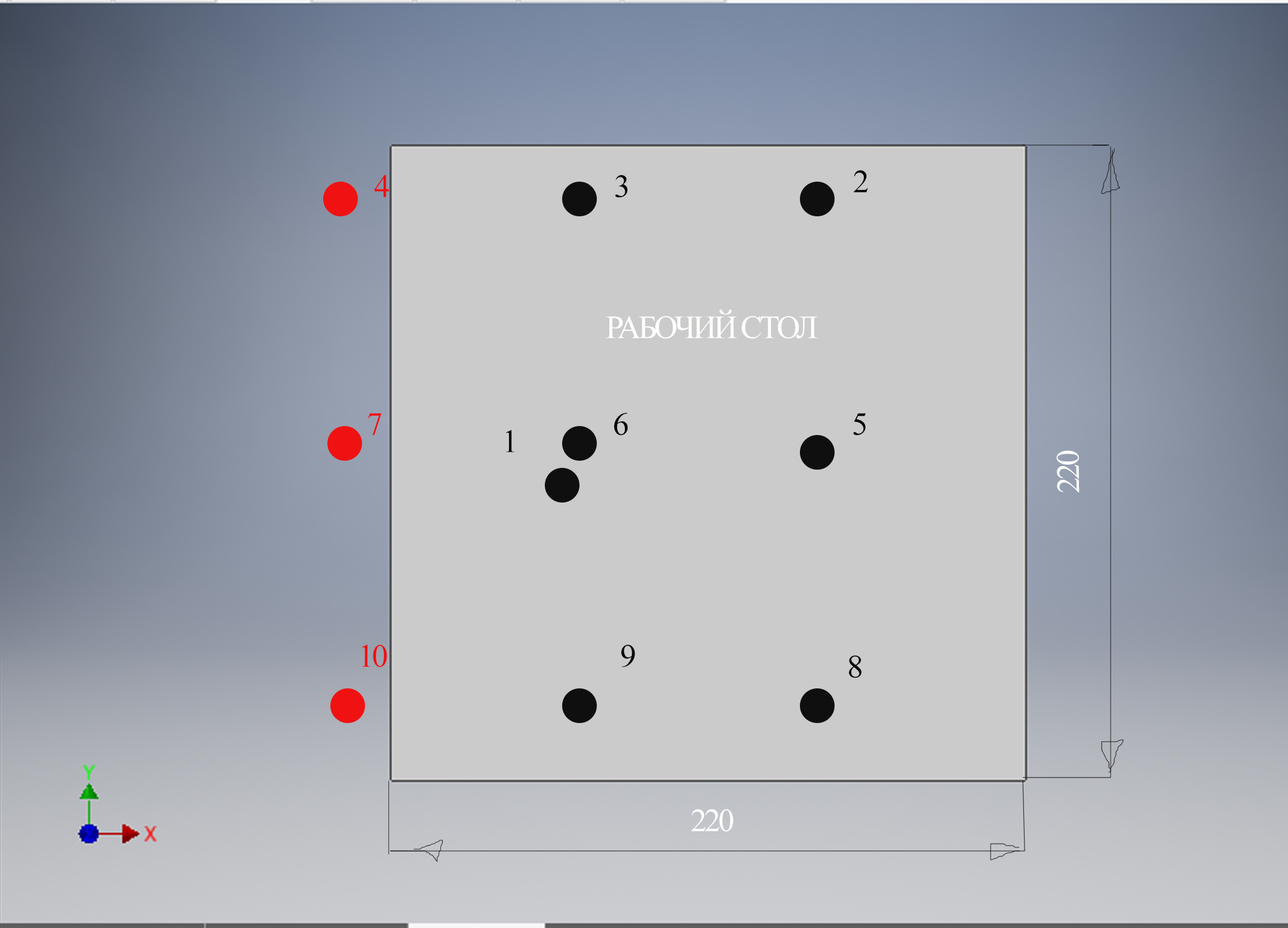1. Автоуровень установлен ёмкостной M18 1-10 мм LJC18A3-H-Z/BX. Настроен для взятия пробы по 9 точкам. При запуске командой Level bad на экране логика работы следующая: экструдер перемещается в точку 1 ( типа центральная)со взятием пробы и далее берет пробу по 9 точкам. (Рисунок №1) Как в прошивке и где это исправить? ( сместить все в право, чтоб точки 2,4,8,10 были по краям стола) Пытался изменять значения в данных разделах //===========================================================================