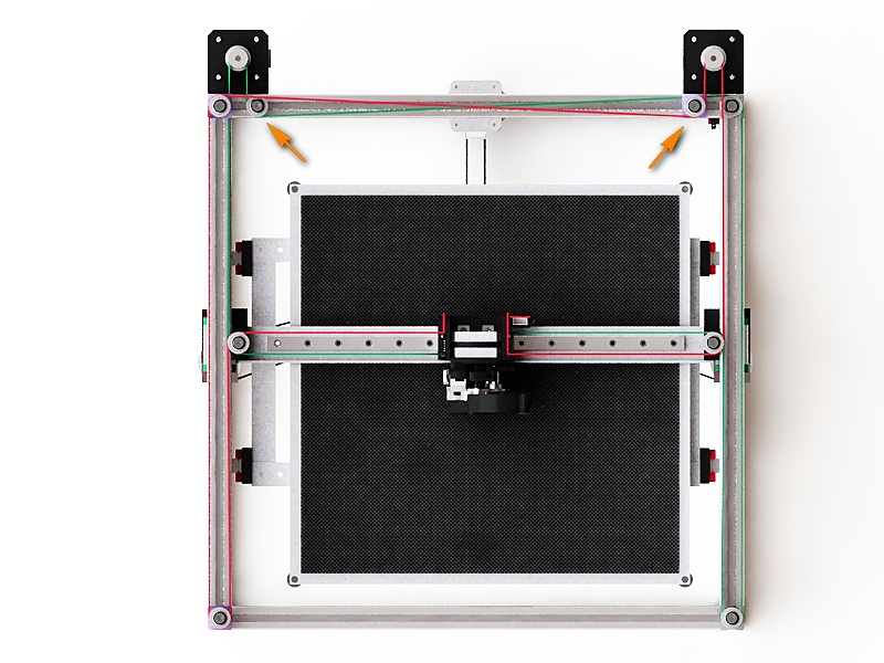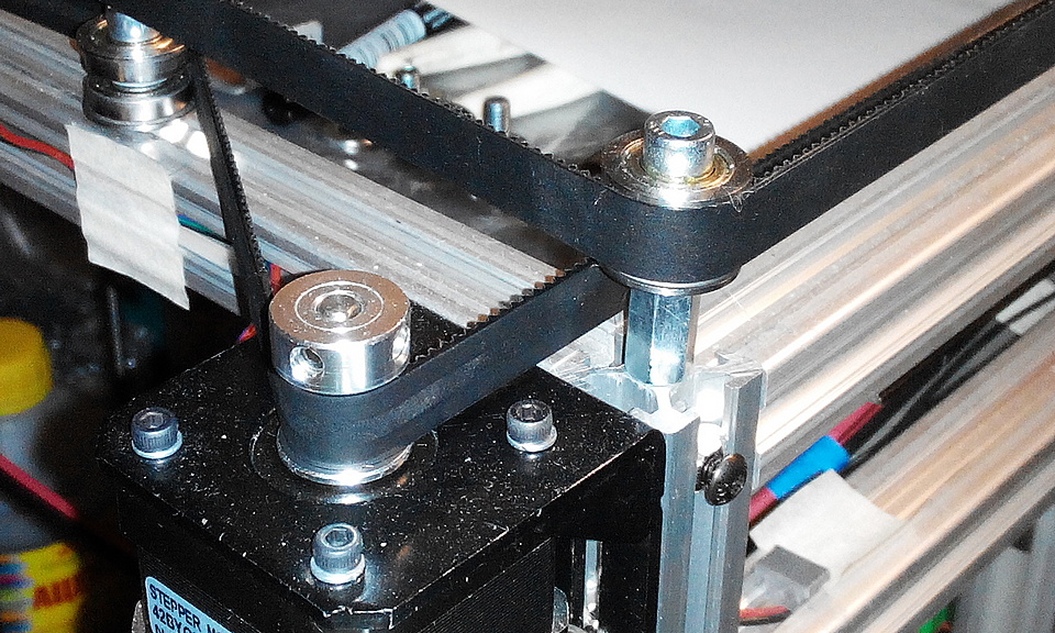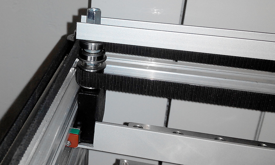 Каретки балки Х объединяет U-образный алюминиевый профиль 80х30х15х2мм. На каретках по Y закреплены держатели обводных роликов - прямоугольная алюминиевая труба 50х45х30х2мм. Подшипники в этой трубе выступают за её внешнюю границу всего на 2мм, соответственно ремни тоже будут проходить всего в 2мм. Это не слишком мало? Не будут они об трубу задевать?