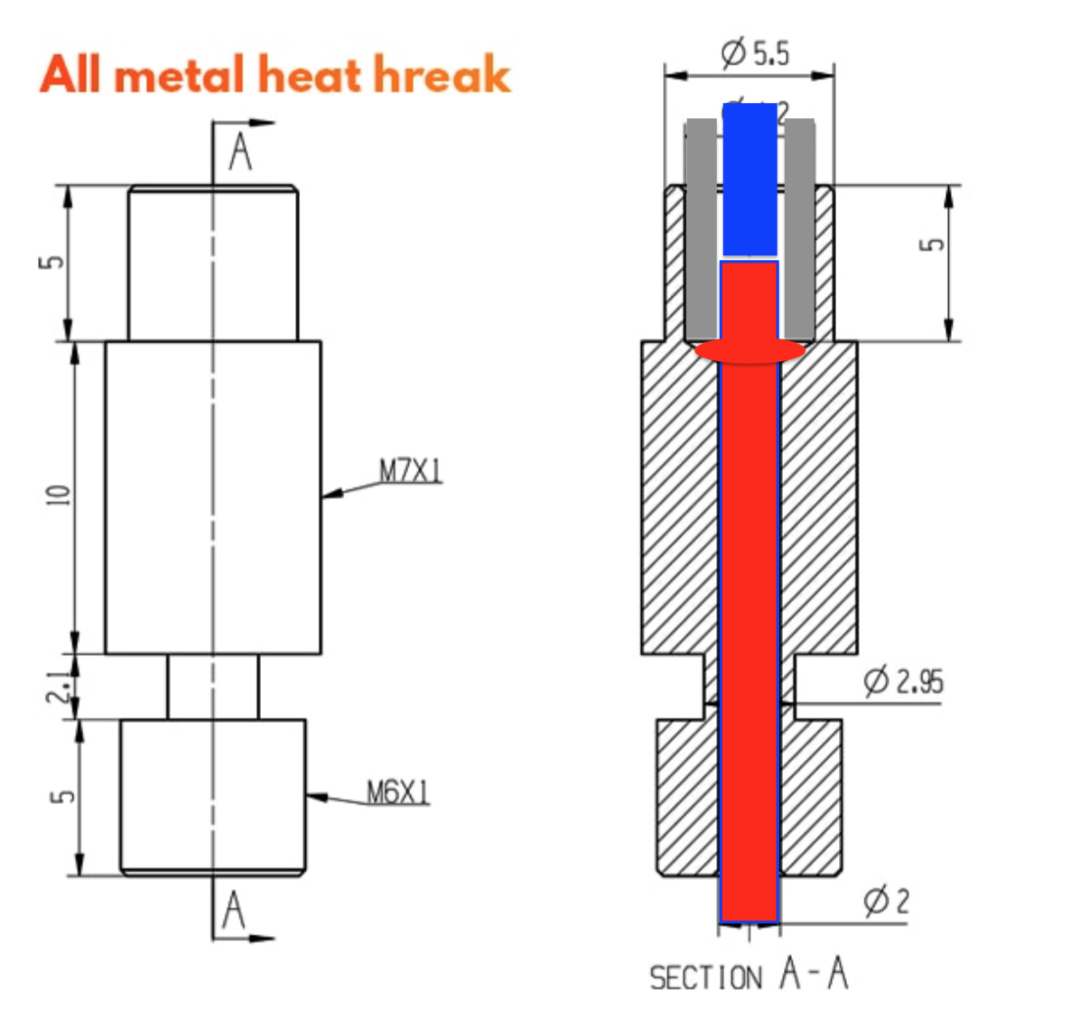 Я как раз таки рекомендую вариант All Metal, где трубка подачи останавливается в верхней части термобарьера а до сопла пруток идет по нержавейке (теплопроводность которой выше фторопласта, но ниже стали - поэтому тут нерж и используют). Контакт с нержавейкой активнее отводит тепло от столбика расплава, поднимающегося от сопла.