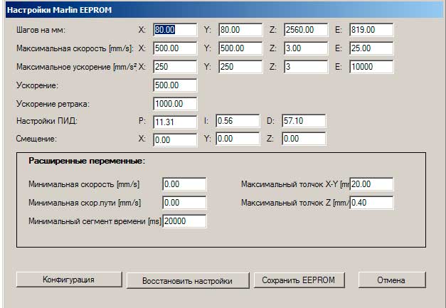 Причем для печати используется другая переменная ускорения (mm/s^2):