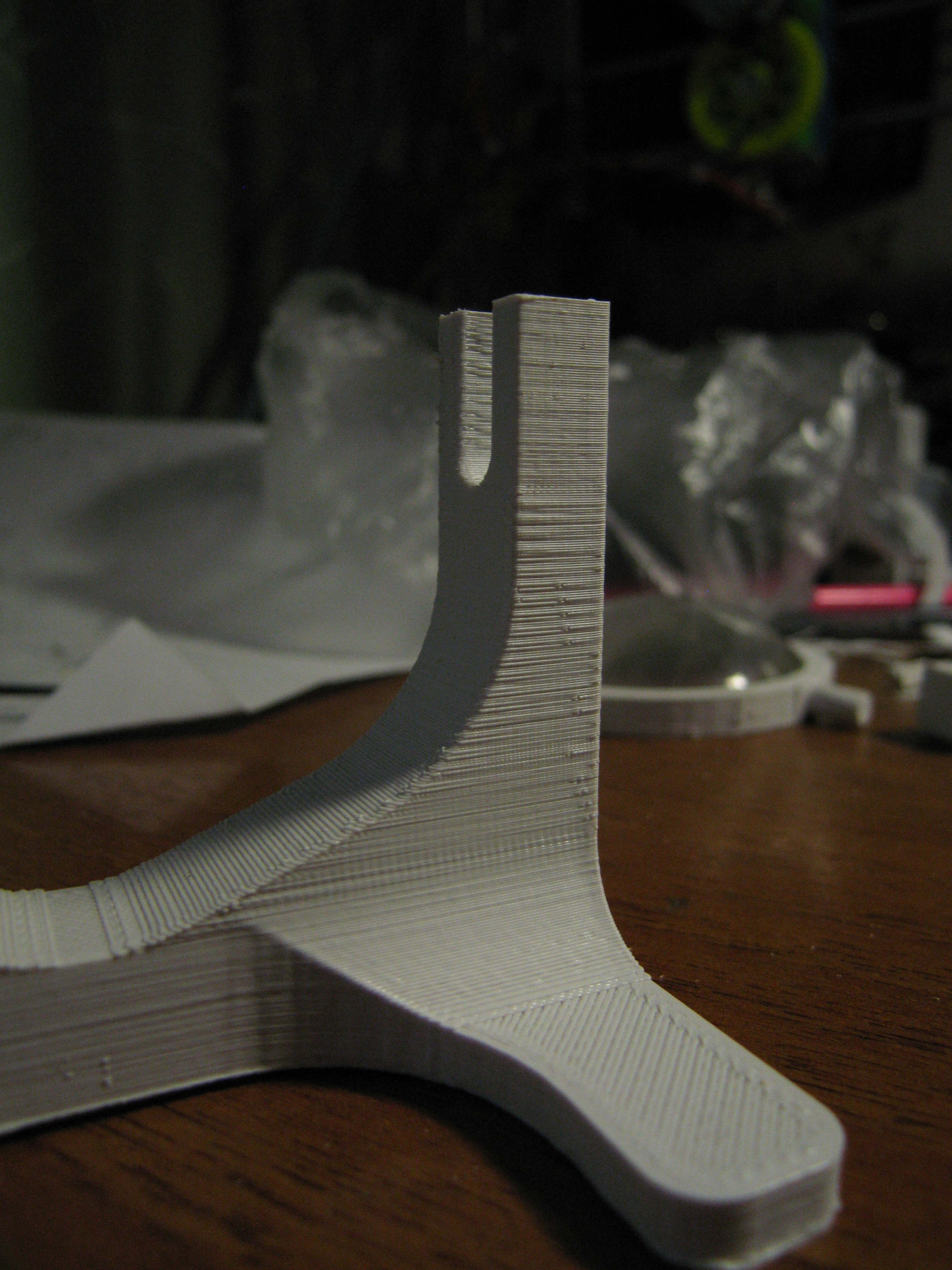 Печатала ПЛА - температура 200 градусов (остановилась на ней), скорость 20, кроватка в последний раз на 100 градусов была, до этого на 80, АБС - температура 230 градусов (это максимальное для принтера значение), скорость 30, кроватка 100. Буду пробовать уменьшать скорость.
