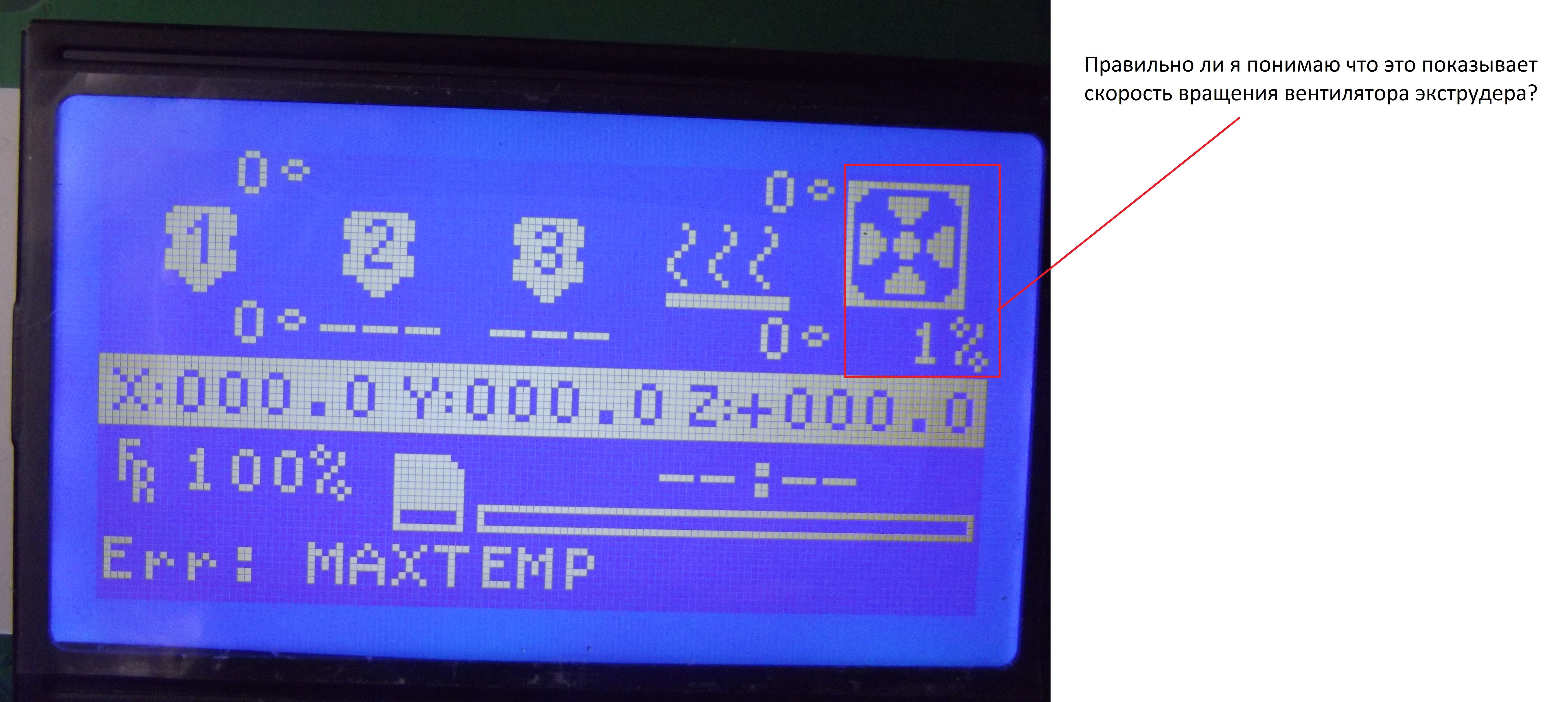 , а этот продать как есть?student_57 писал(а):Всем привет! на днях получил экструдер (фото прилагается), по контактам у экструдера разобрался, на Ramps 1.4 что куда подключать тоже понял, всё кроме вентилятора... Подскажите профессора куда его подключать и регулируются ли на нём обороты?(если можно обозначьте прям на фото). и ещё вопрос по поводу информации на дисплее, вопрос на фото. Спасибо!
