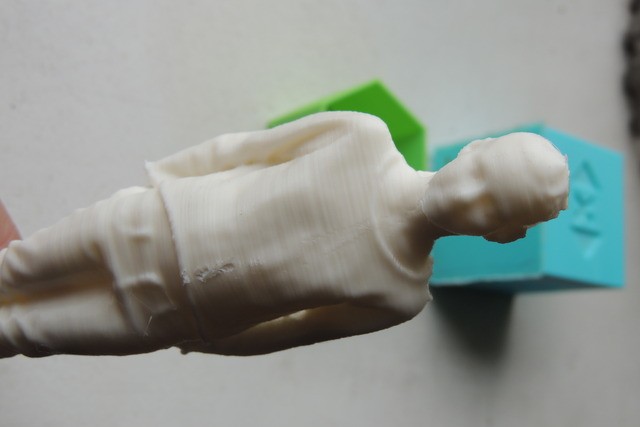 C фигурой из АВS - так это , имхо, усадка..., попробуйте напечатать со стенкой ( высоту skirt поставить в такое же колличество слоев что и модель), а еще (у меня было) перегрев термобарьера при печати АВС приводил к тому, что маунтинплата хотенда из АВС размягчалась и хотенд "гулял"-шатался и это давало некислые смещения послойные, решил заменой маунтинплаты из АВС на плату из люминя (можно фанеру, но люминь еще и рассеивает тепло охлаждая термобарьер и не дает образовываться пробке из расплава).