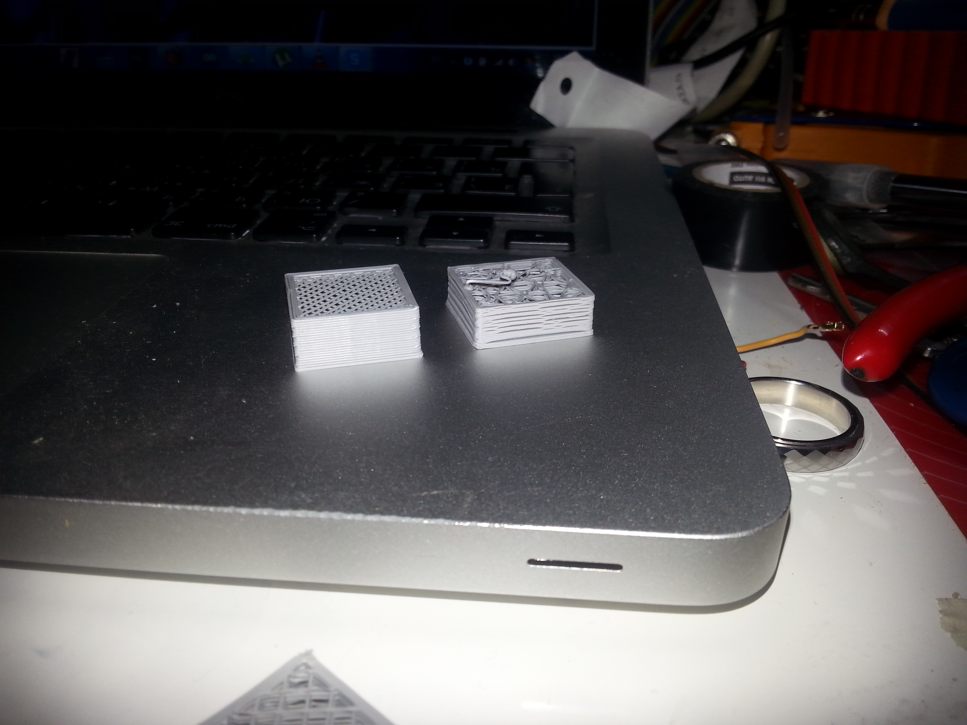 Слева высота слоя - 0.4мм, справа 0.3мм. Почему-то мелкие размеры стали совсем неаккуратными.
