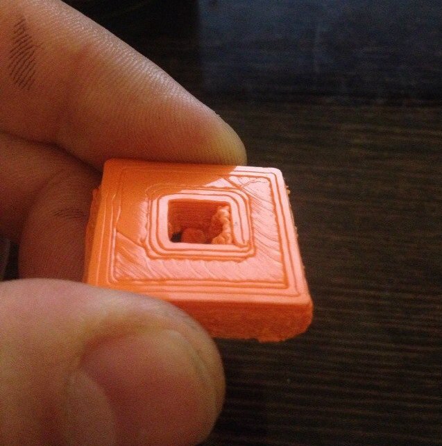 Сделал сегодня пробную печать, немного огорчен - экструдер оторвал юбку и брим, я успел их выдернуть и он начал печатать этот куб