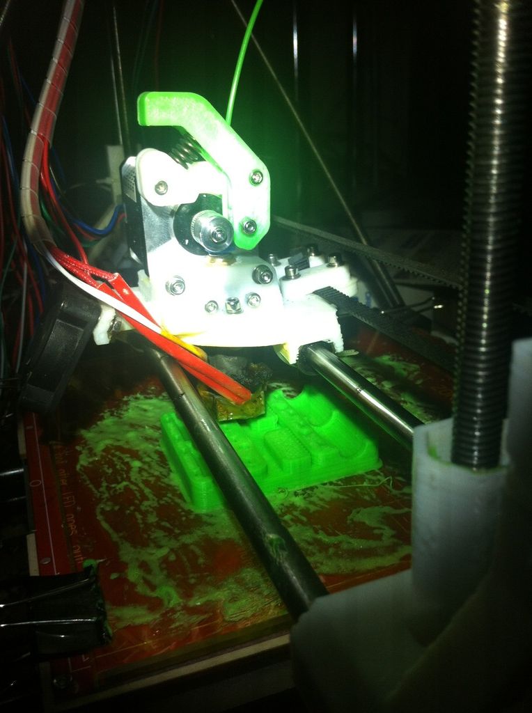 отстроил движение, поток. Теперь такая фигня - при печати, как только сопло касается стола, из него вылезает небольшая сопля пластика, свороачивается в комочек и дальше нить укладывается ровно и красиво (относительно первых попыток). Пробовал делать скирт пошире, чтобы сопля осталась там, то чаще всего он эту соплю тянет за собой к модели.