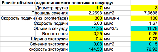 Это не ответ, это исходные данные, я сравнивал экструдеры исходя из одинакового объёма экструзии