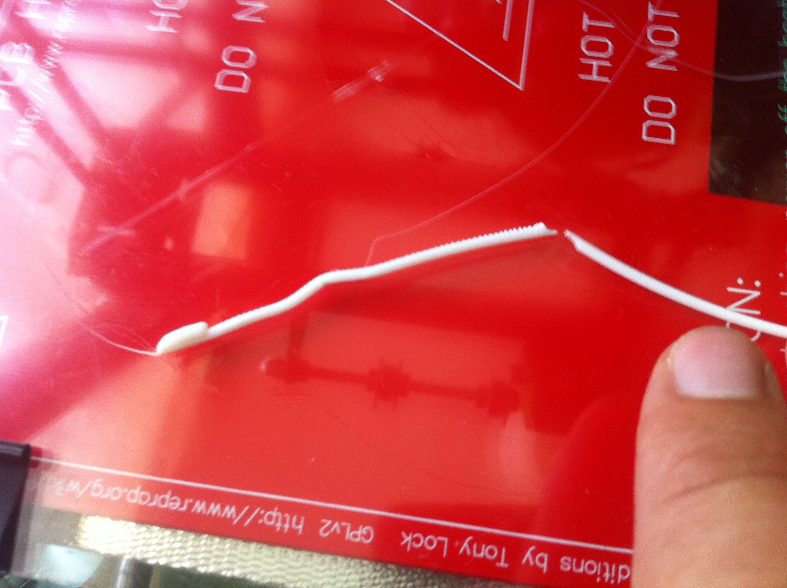 Похоже у вас забился HotEnd, о чем говорит выеденная часть прутка, изгиб прутка и наплыв в конце. Не Buda-Style случайно?