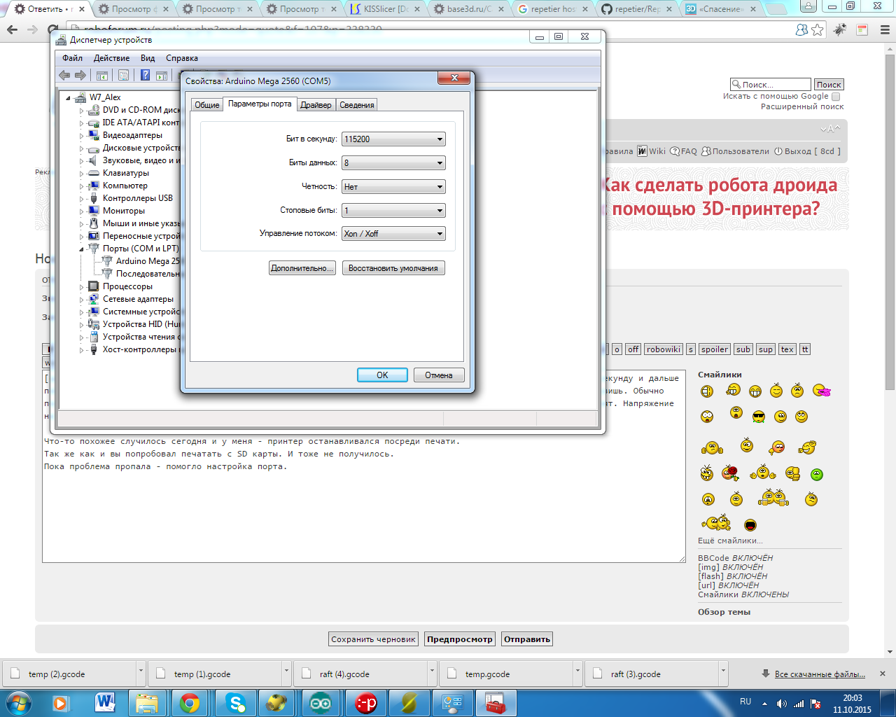 Спасибо за подсказку. У меня там вообще 9600 скорость стояла. Попробую теперь с новыми настройками. Я даже не помню настраивал ли когда нибудь скорость порта именно в винде. Но после установки Вин10 точно туда не лазил.