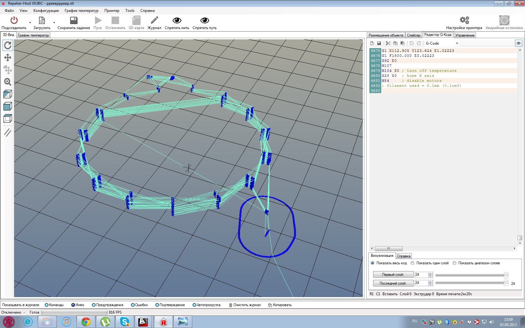 Добавлено спустя 13 минут 7 секунд:А еще если включен режим PID для стола то нужно провести его автокалибровку : M303 S[temp С,обычно 100] E[-1 для кровати или номер экструдера для голов] С[кол-во циклов]