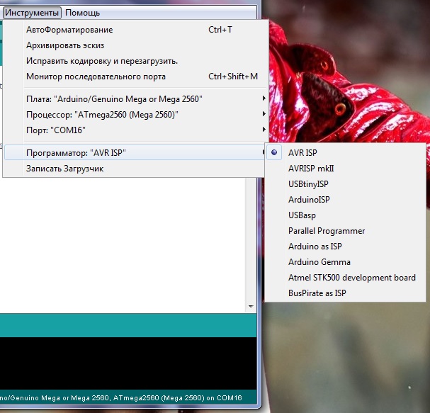 Да и ещё, о светодиодах на меге, горят два красных "on", "L" и иногда мигает светодиод "rx" причём разницы нет от USB питание или от блока питания 6 вольт. При нажатии на ресет пару раз мигает светодиод "L".