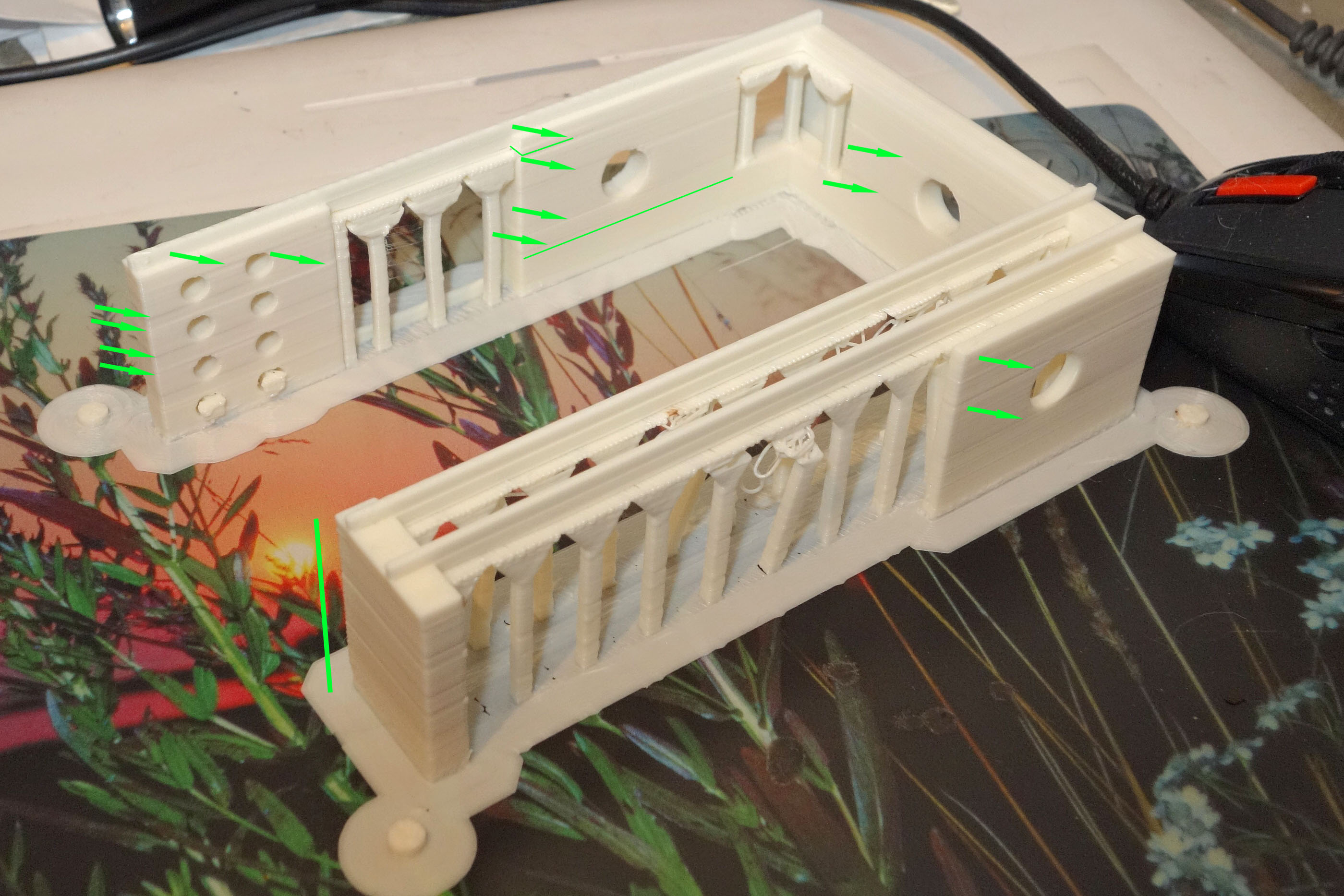 И, кстати, почему надламываюся колонны? Я понимаю, что сопло задело, но с чего? Или это вообще нитью пластика в какой-то момент "утянуло", когда сопло "снималось" с печатания слоя колонны?