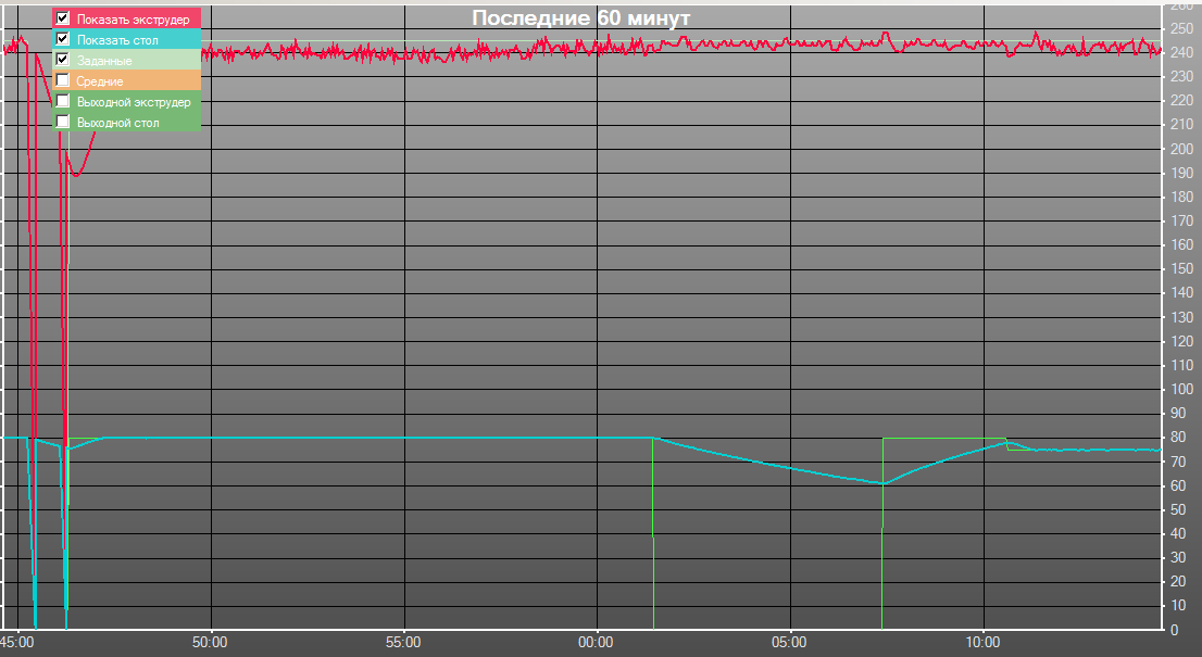 Странно что недогревается сопло и так скачет температура. Мощности нагревателя с головой хватает для разогрева сопла. У меня сейчас нагревательный блок вообще не изолирован, а температура пляшет в пределах плюс-минус 0.5 градусов. Проверьте настройки ПИД-регулятора для нагревателя, явно не настроен. 1-2 калибровки и будет четко держать.