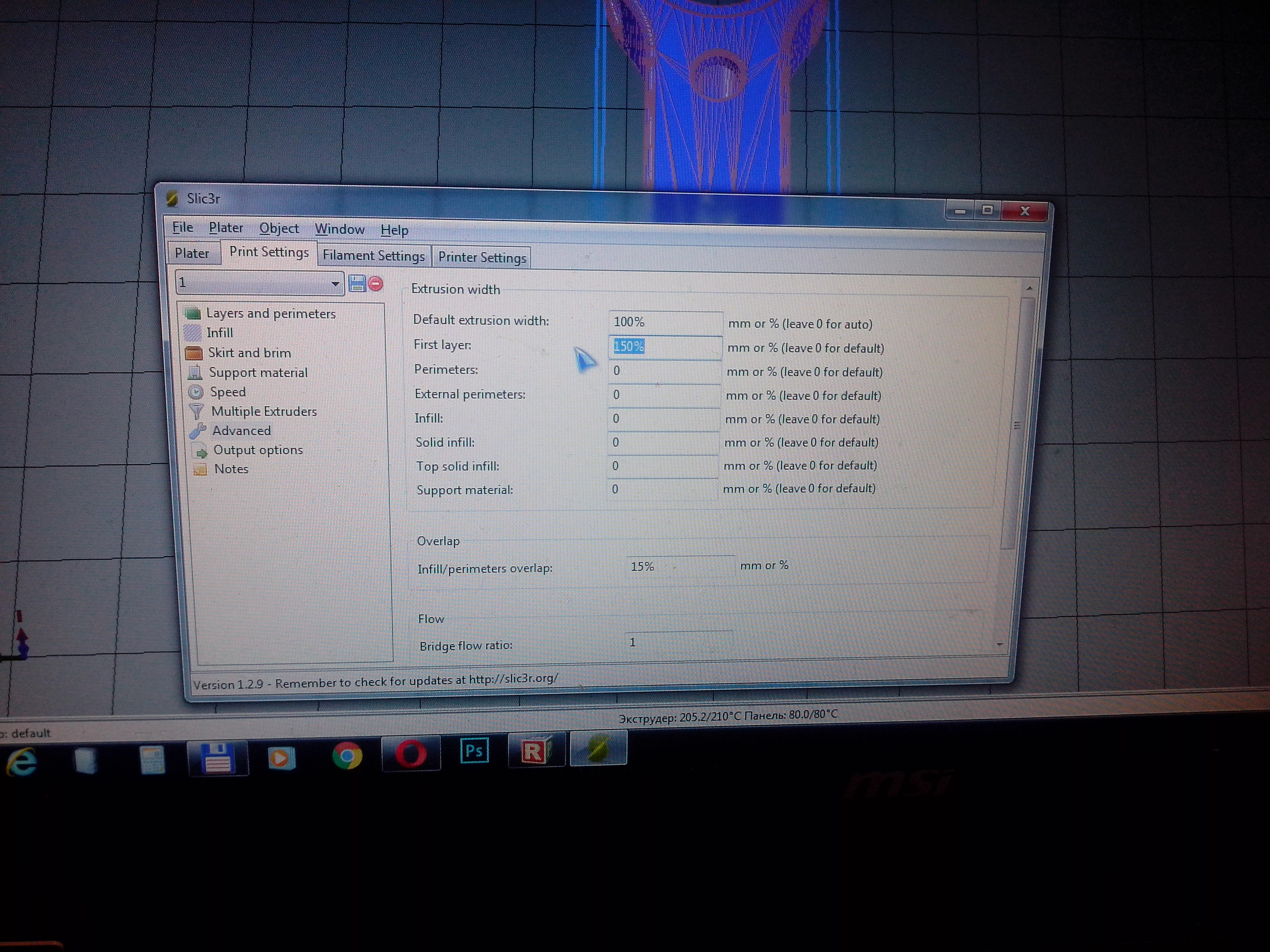 ShadowOleg писал(а):беда печальная, помогите, на первом слое линии brim и все остальные не сливаются воедино.